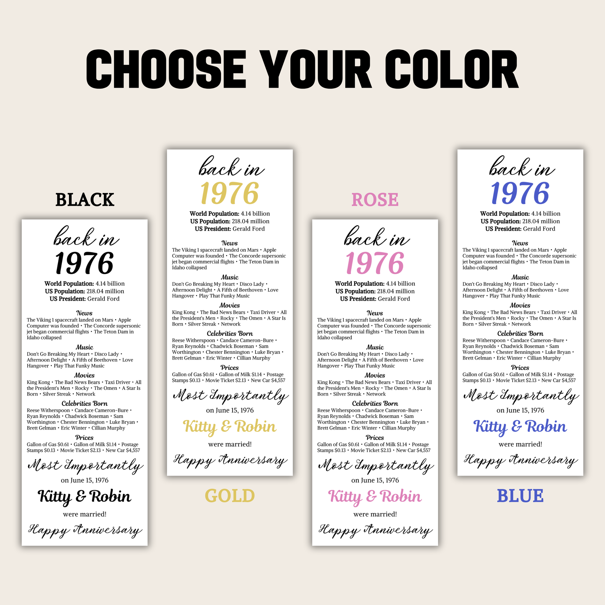 1976 Anniversary Table Cards | Editable 50th Anniversary Place Cards