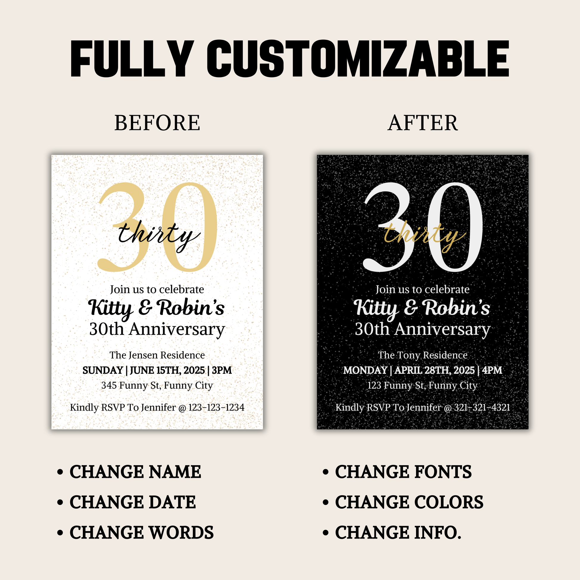 30th Anniversary Invitation | Editable 30th Anniversary Party Invite