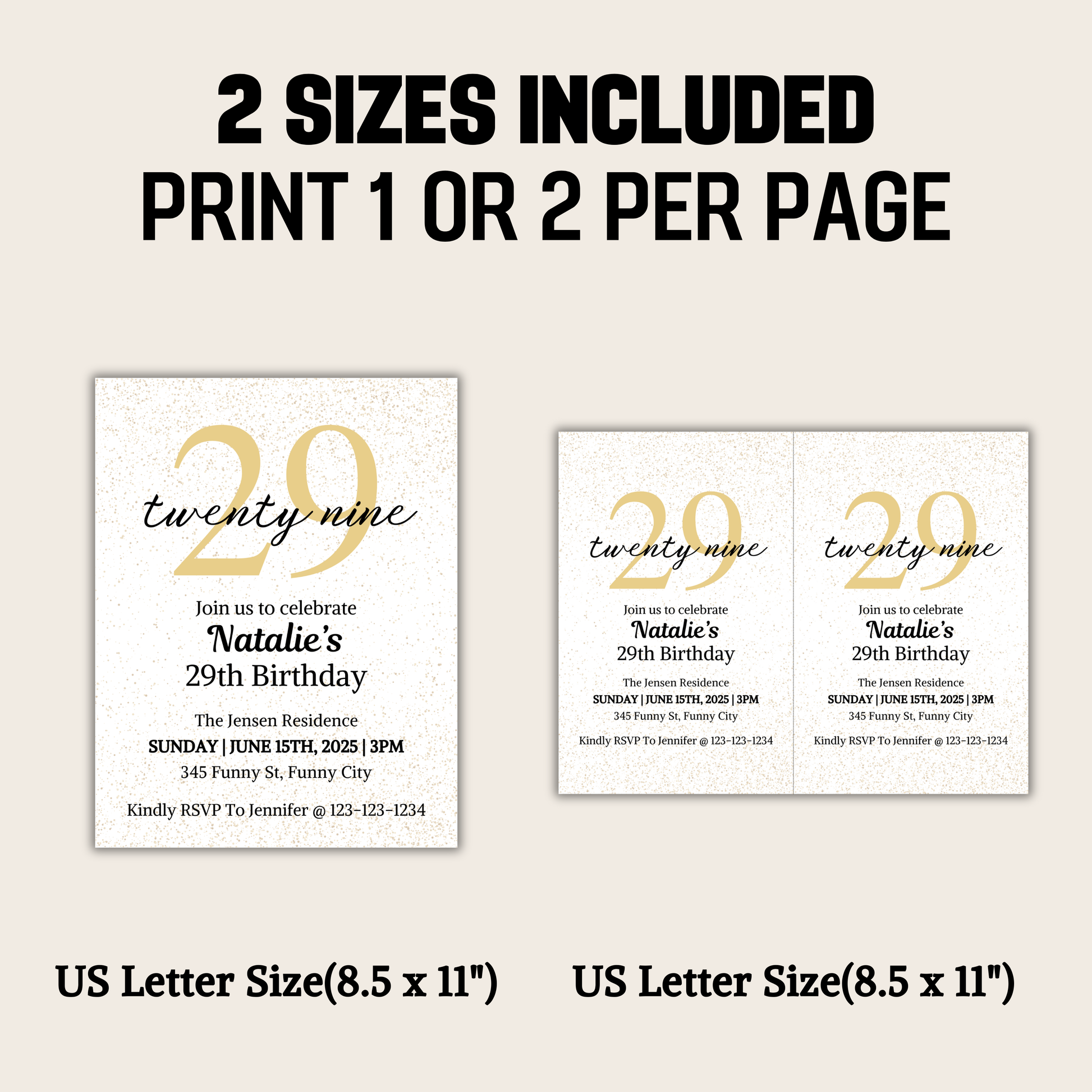 - A file included 29th Birthday Invitation with links to templates (US Letter)(8.5" x 11").