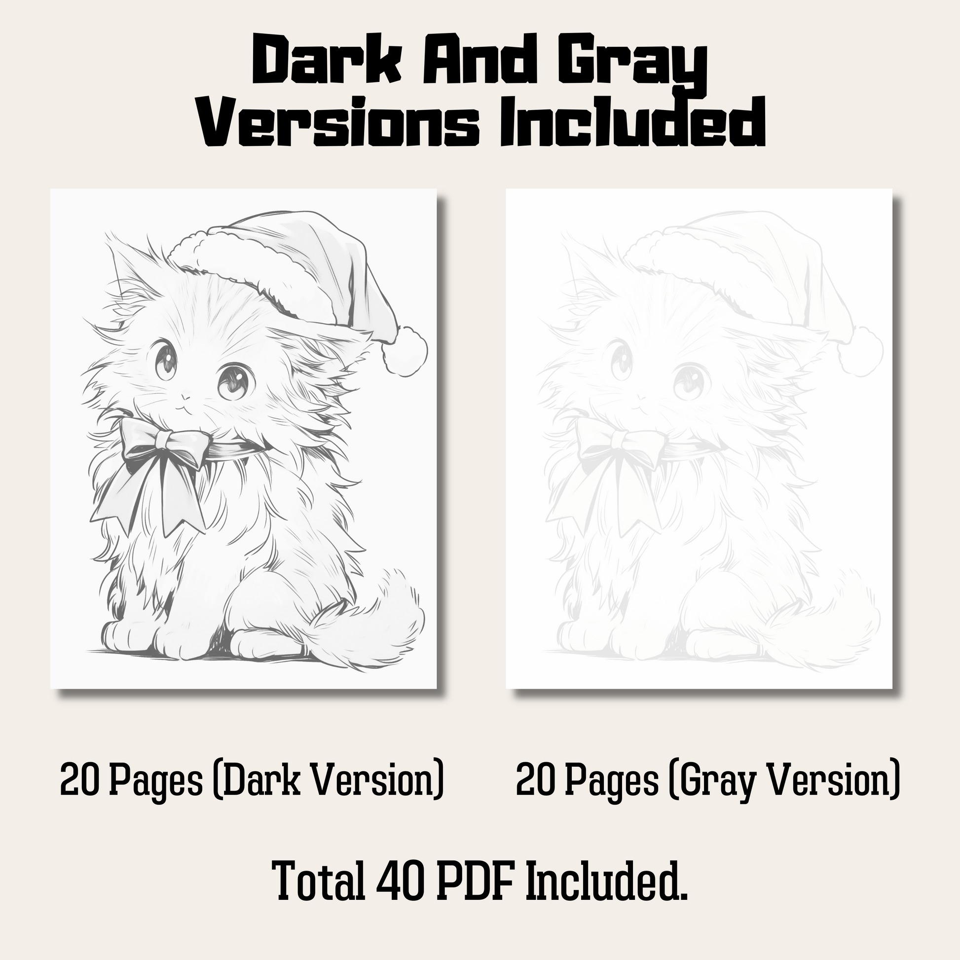 20 Pages Christmas Cats Coloring Book, Cat Grayscale Coloring Pages For All Ages
