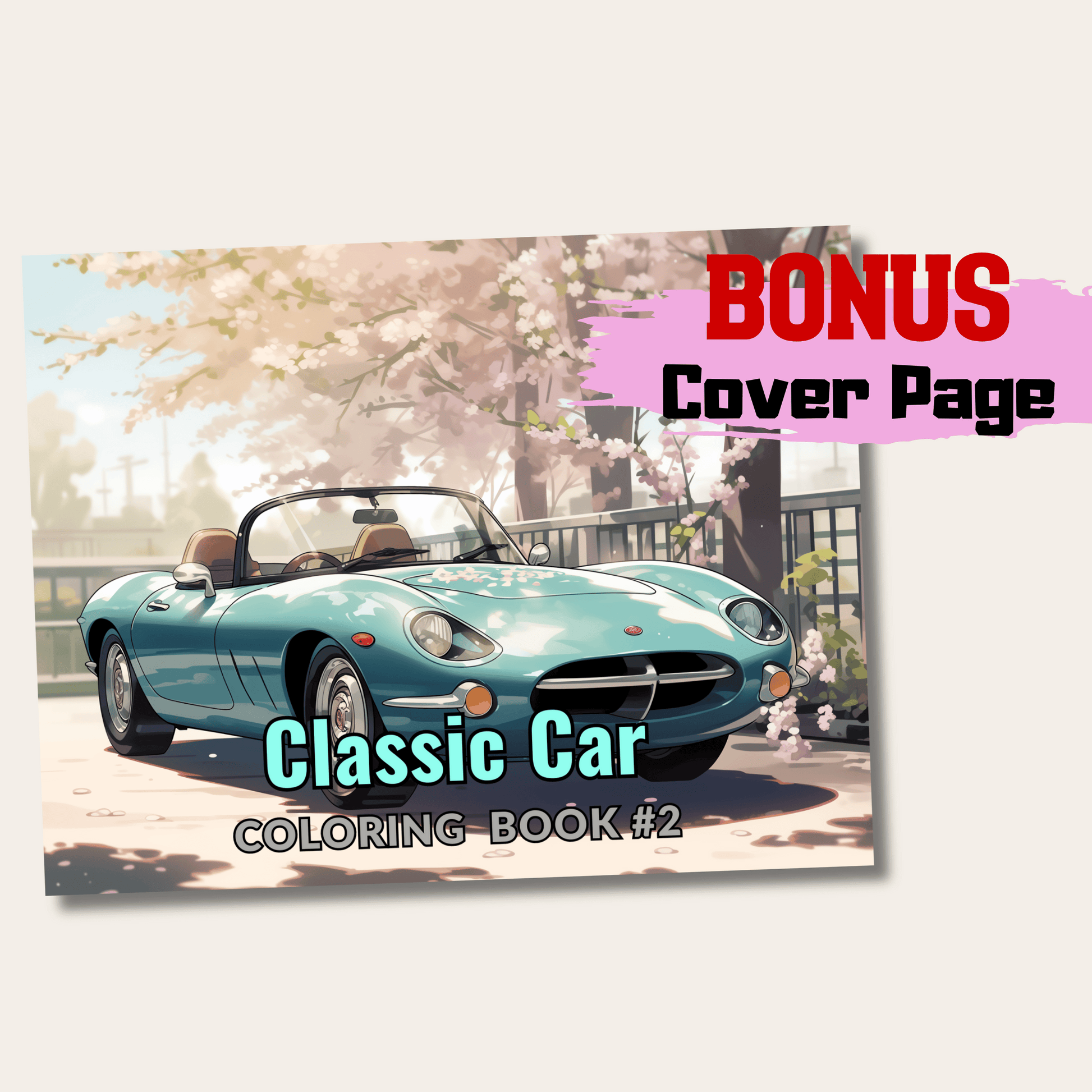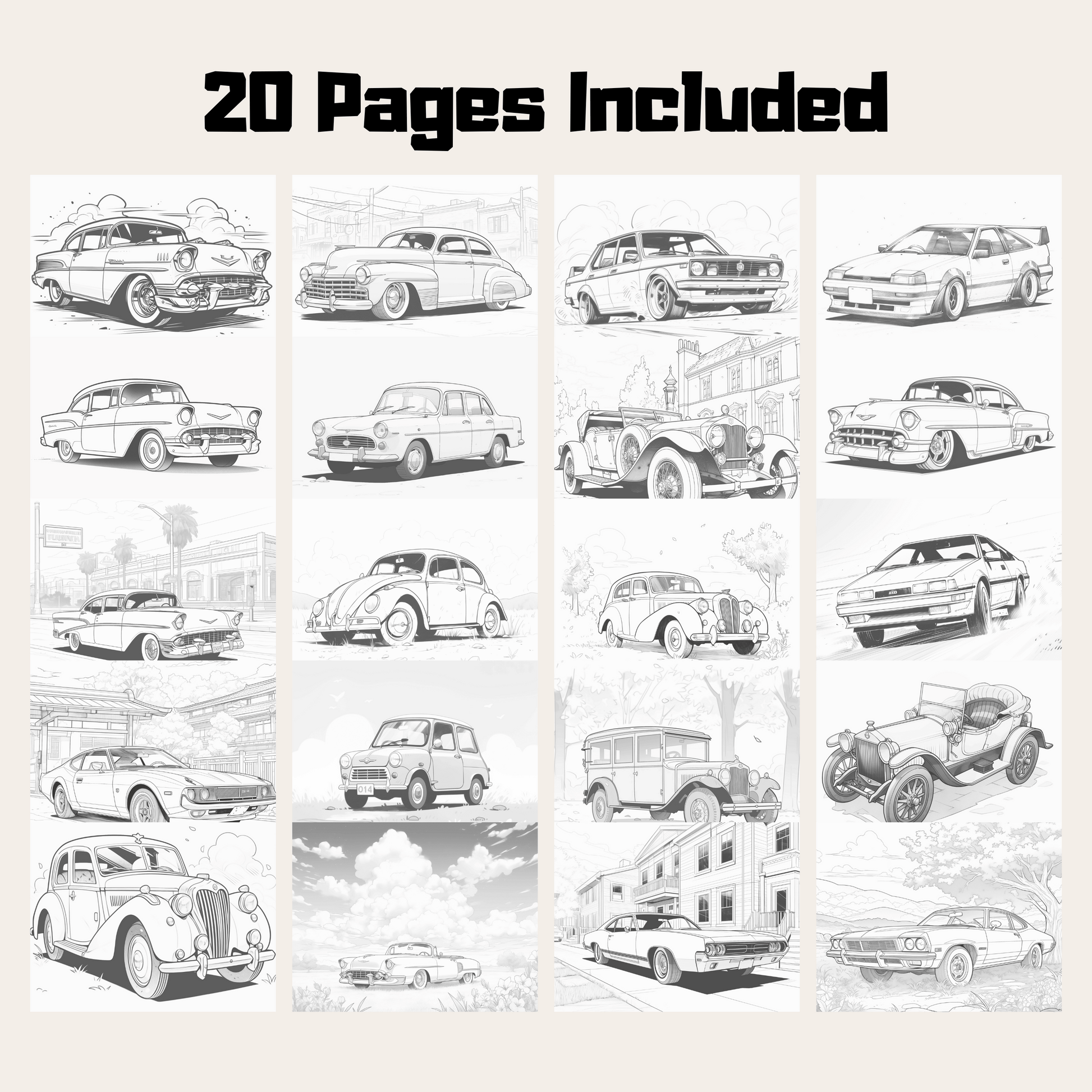20 Pages Classic Car Coloring Book, Unique Automotive Art