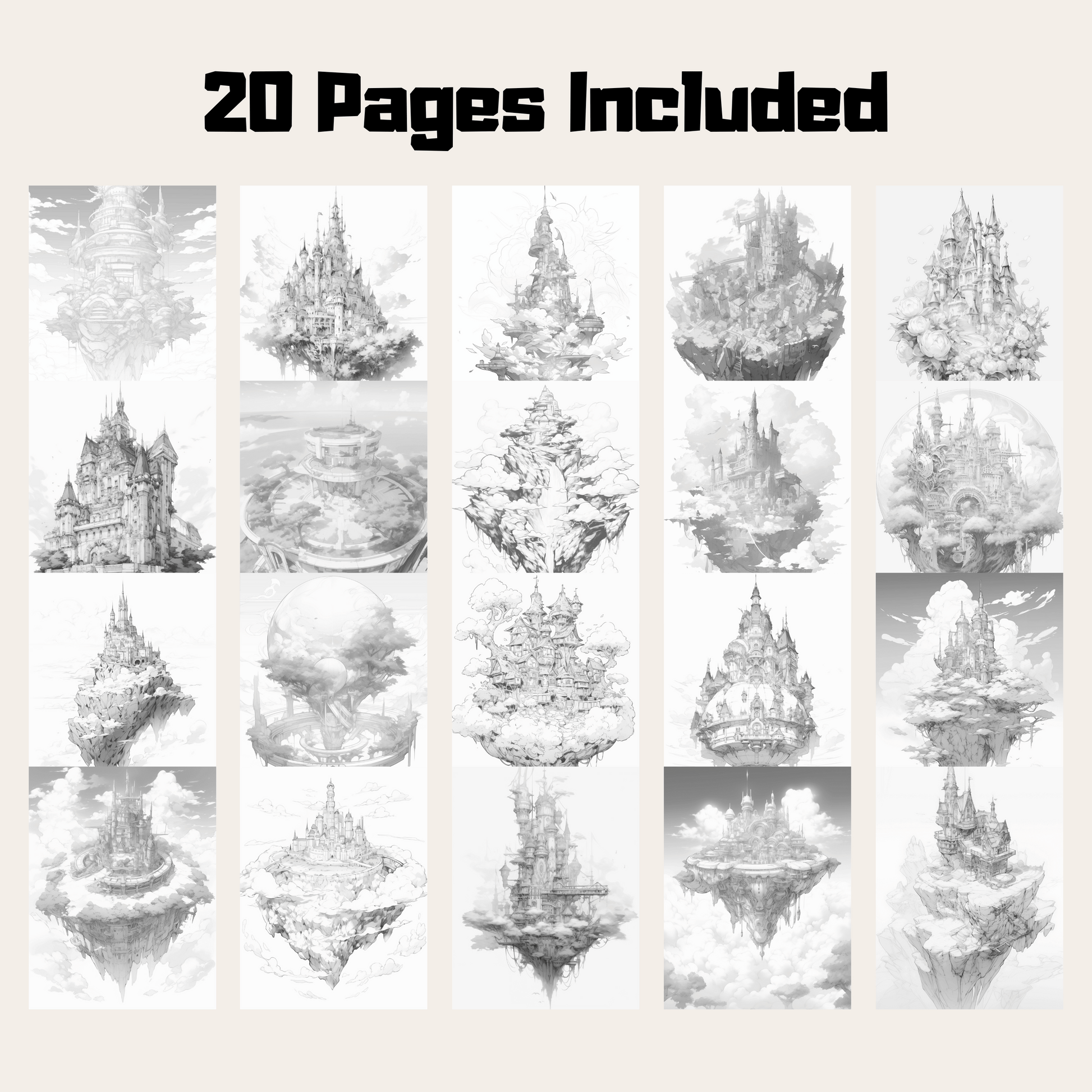 20 Pages Sky Castle Coloring Book, 20 Engaging Pages for Creativity Ignition