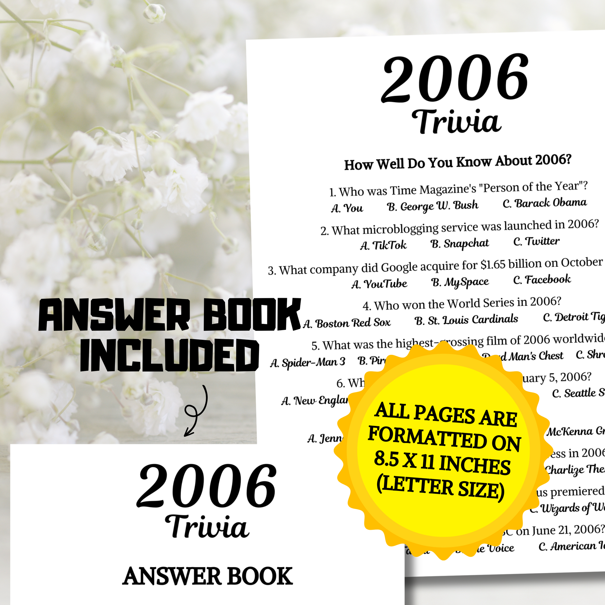 - A file included 2 Pages 2006 Trivia Game (8.5" x 11") (Questions).