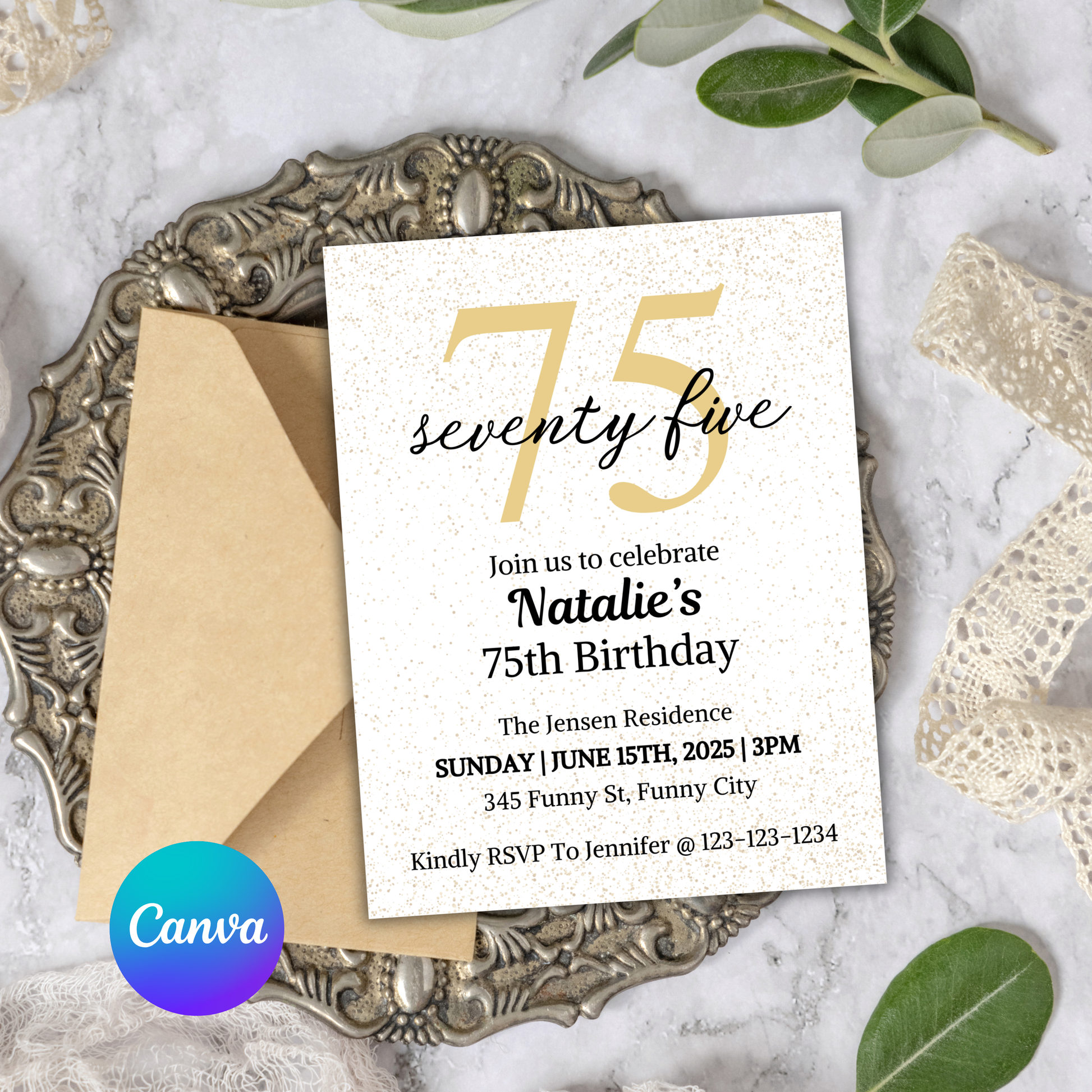 75th Birthday Invitation | Editable 75th Birthday Party Invite
