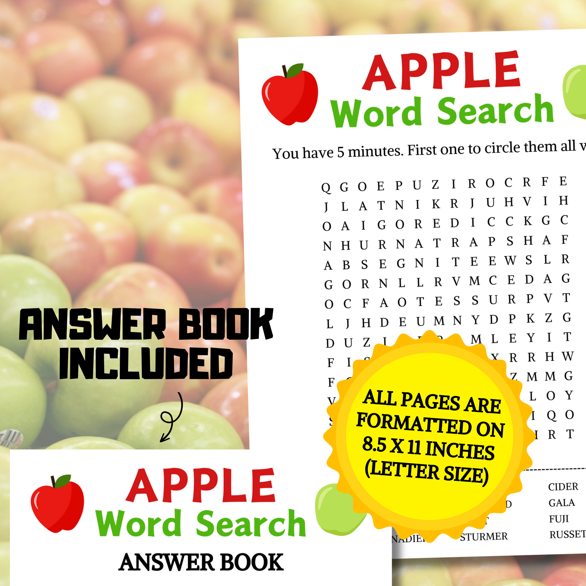 - A file included Apple Word Search Game (8.5" x 11") (Answer Book).