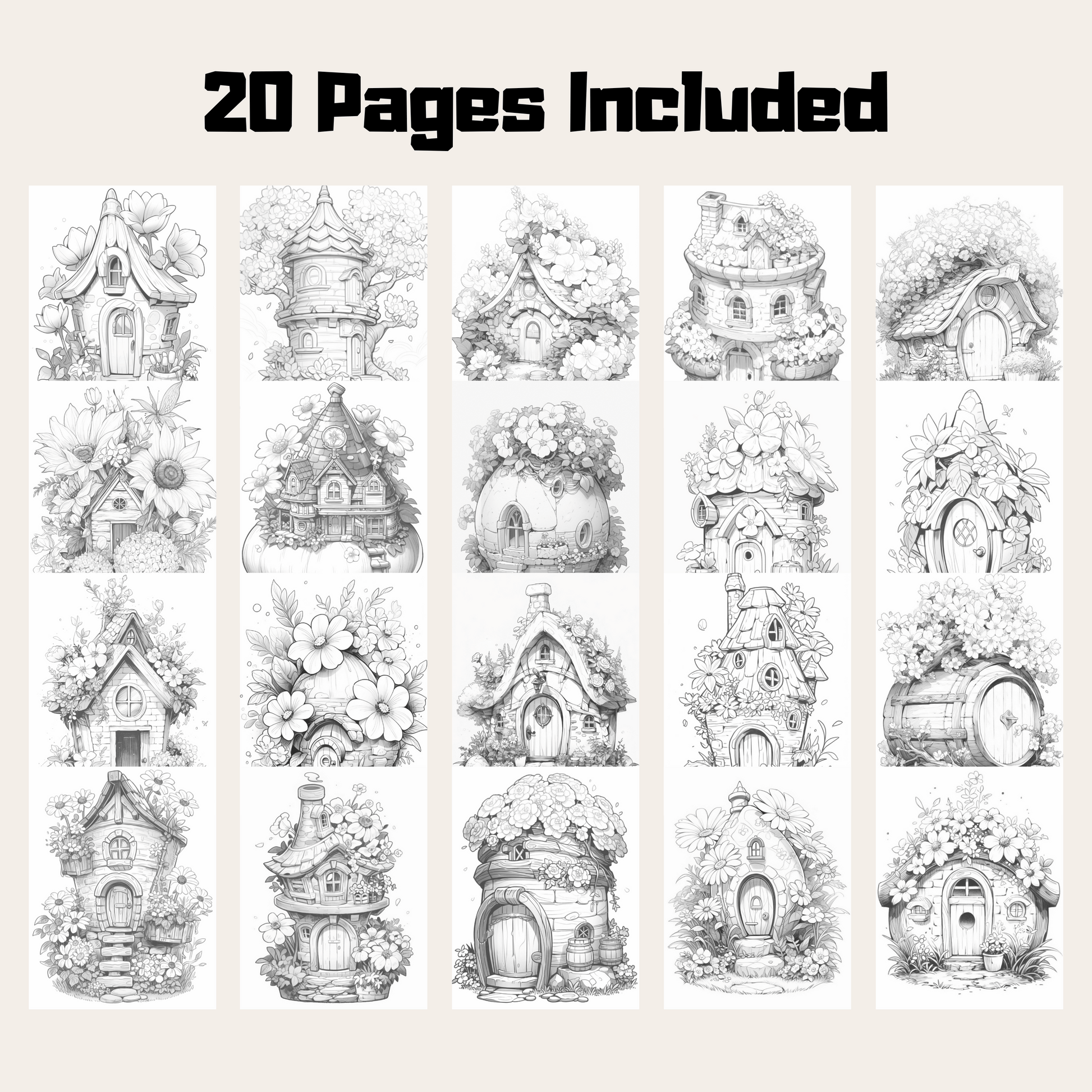 Blossom fairy houses coloring book is printable & reusable PDF and instant digital download. Each illustration contains intricate detail and is suitable for beginners and experienced colorists alike, suitable for both those who enjoy a challenge and those just starting out on their coloring journey.