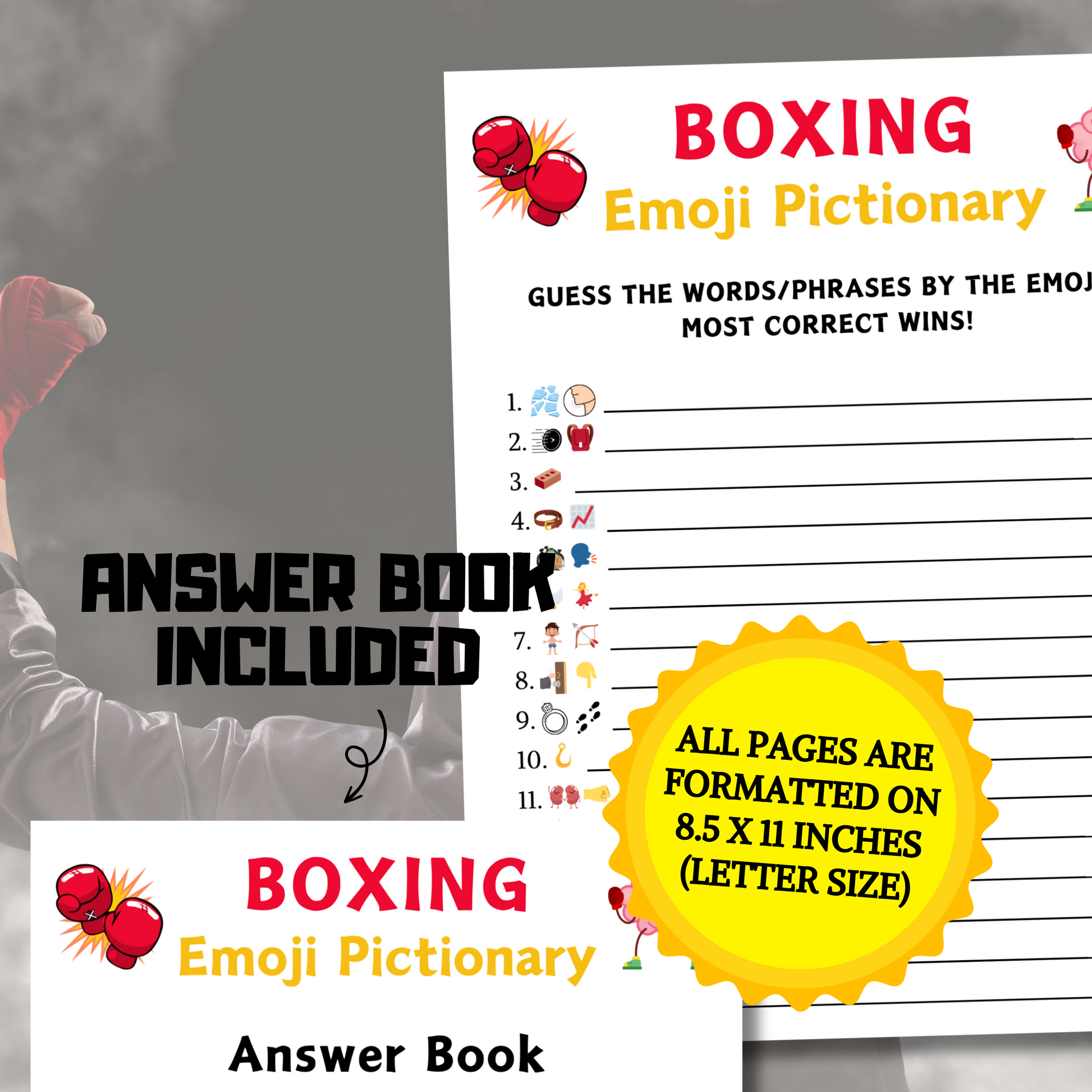 - A file included Boxing Emoji Pictionary Game (8.5" x 11") (Answer Book).