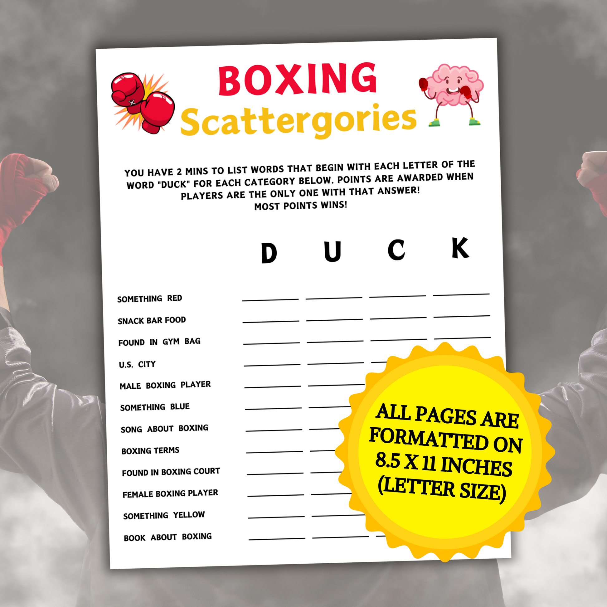 - A file included Boxing Scattergories Game (8.5" x 11").