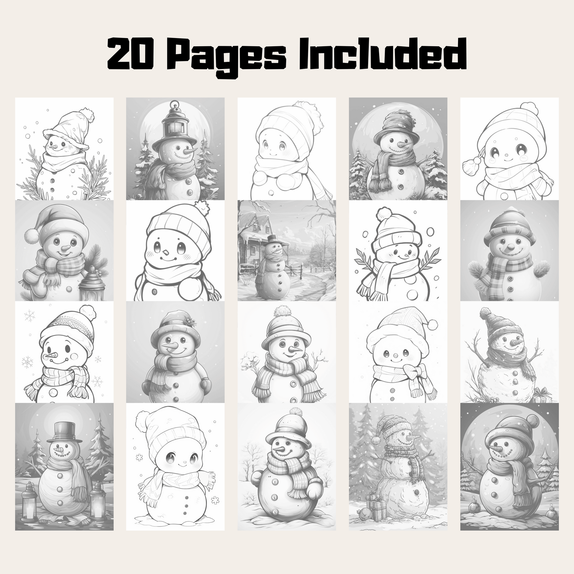 Christmas Snowman Coloring Book, 20 Delightful Snowman Grayscale Coloring Pages for All Ages