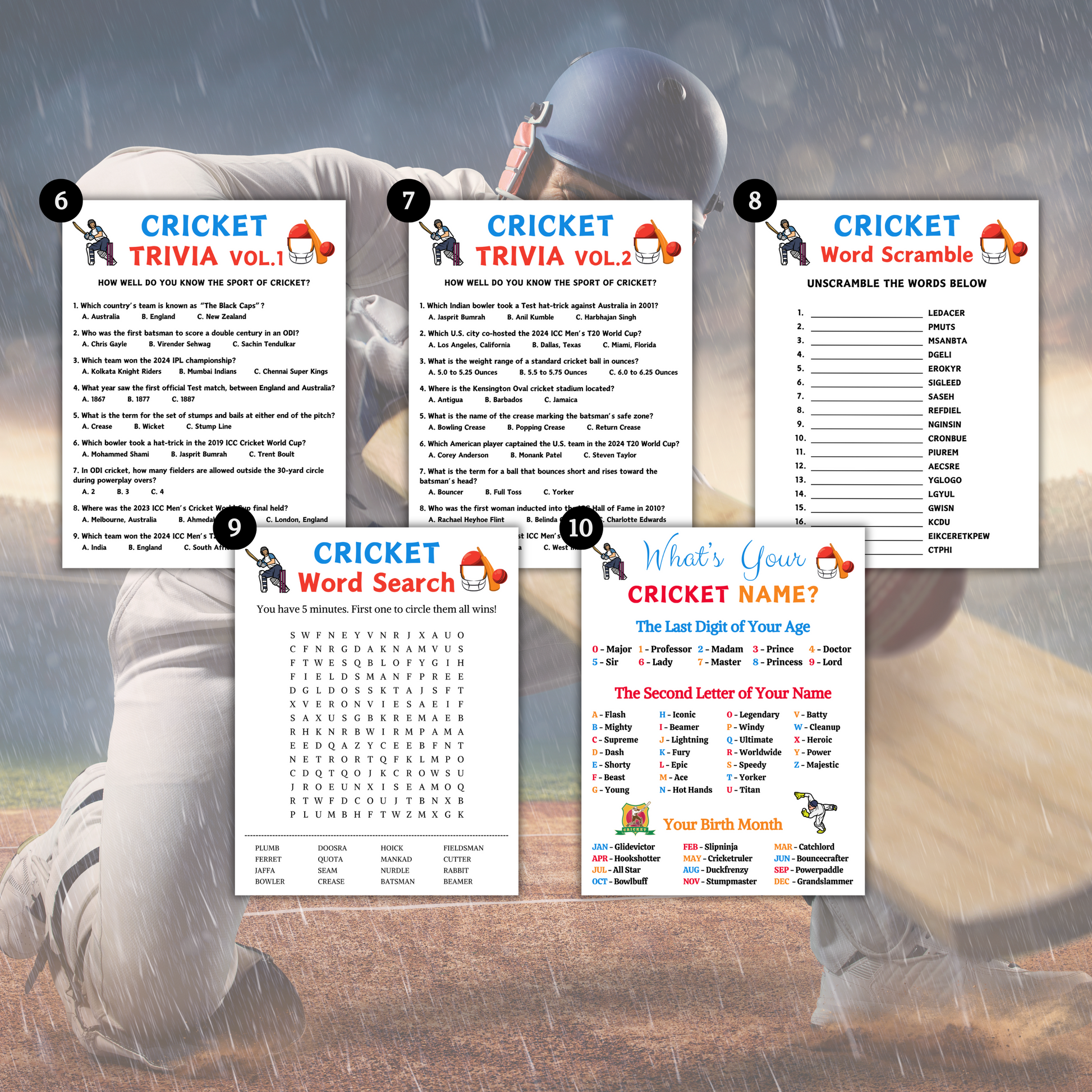 Cricket Games Bundle | Printable Cricket Team Party Game