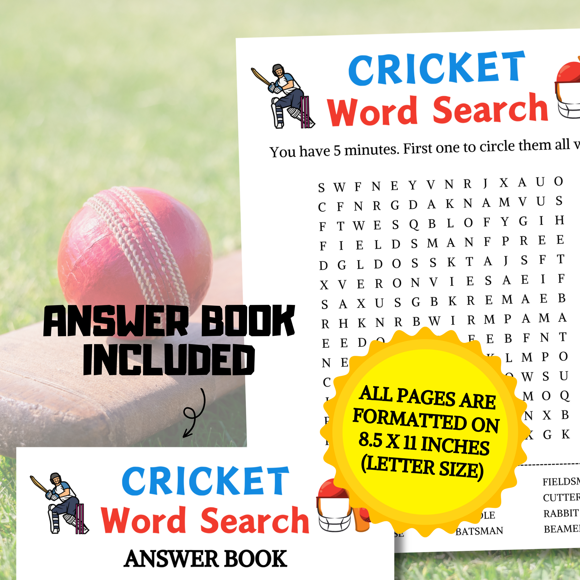 - A file included Cricket Word Search Game (8.5" x 11") (Answer Book).