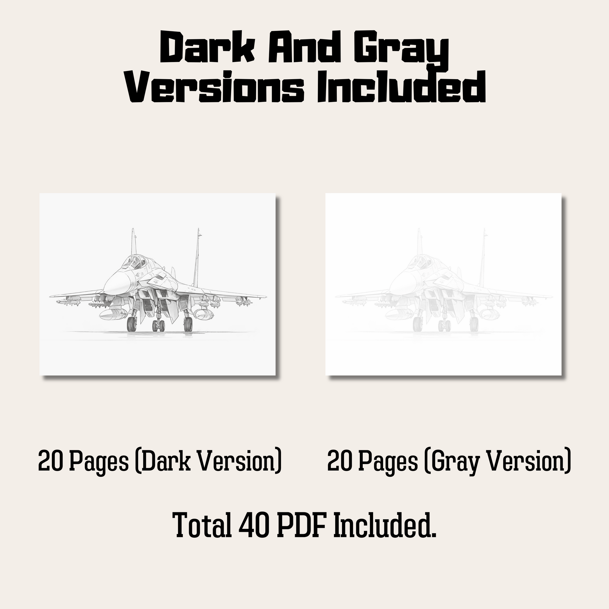1 PDF file with a link to download these product. Total 41 PDFs. 20 PDF files (dark version) + 1 cover page PDF. Also, 20 PDF files (gray version).