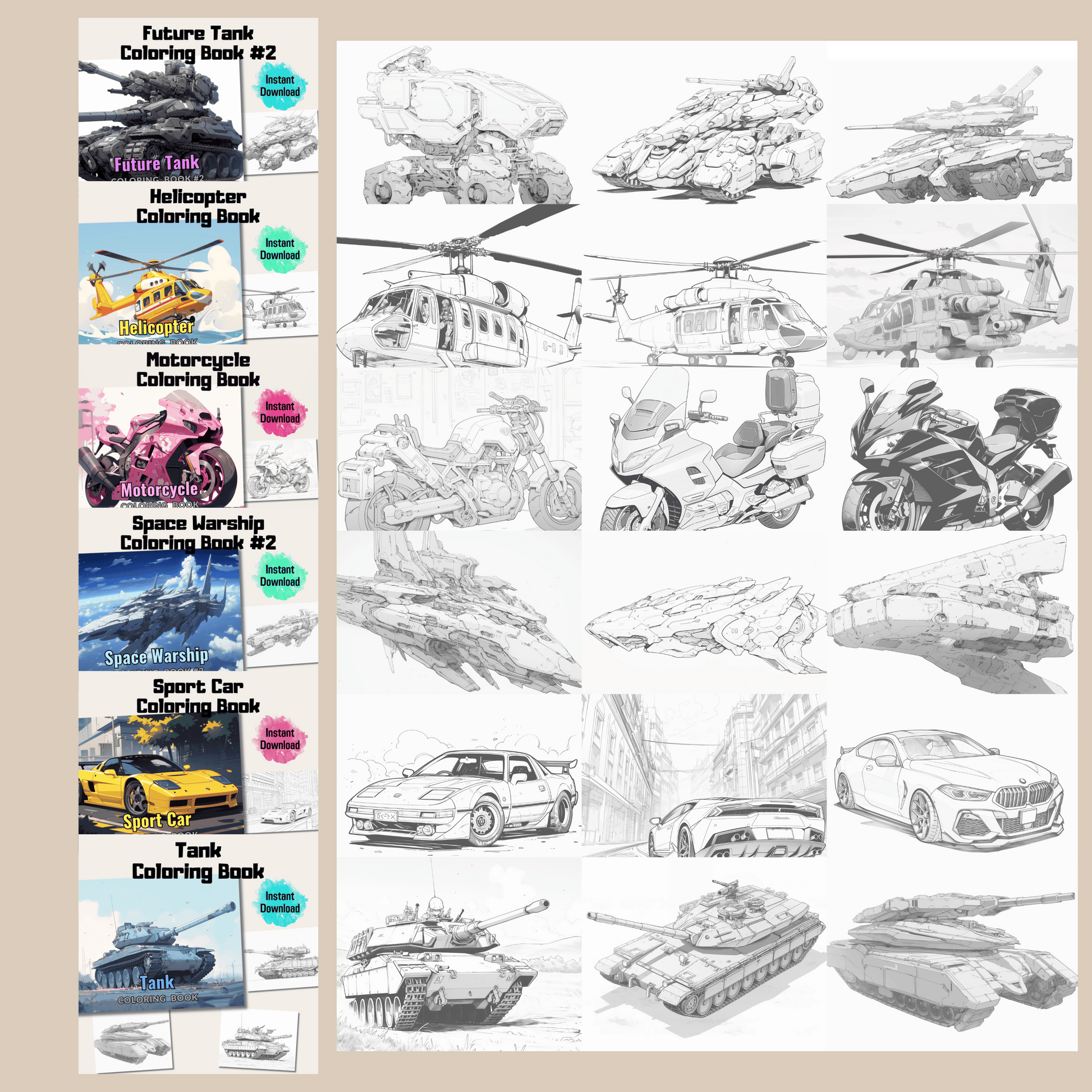 Epic Transport Coloring Book Bundle, 400 Pages High Quality Illustrations PDF