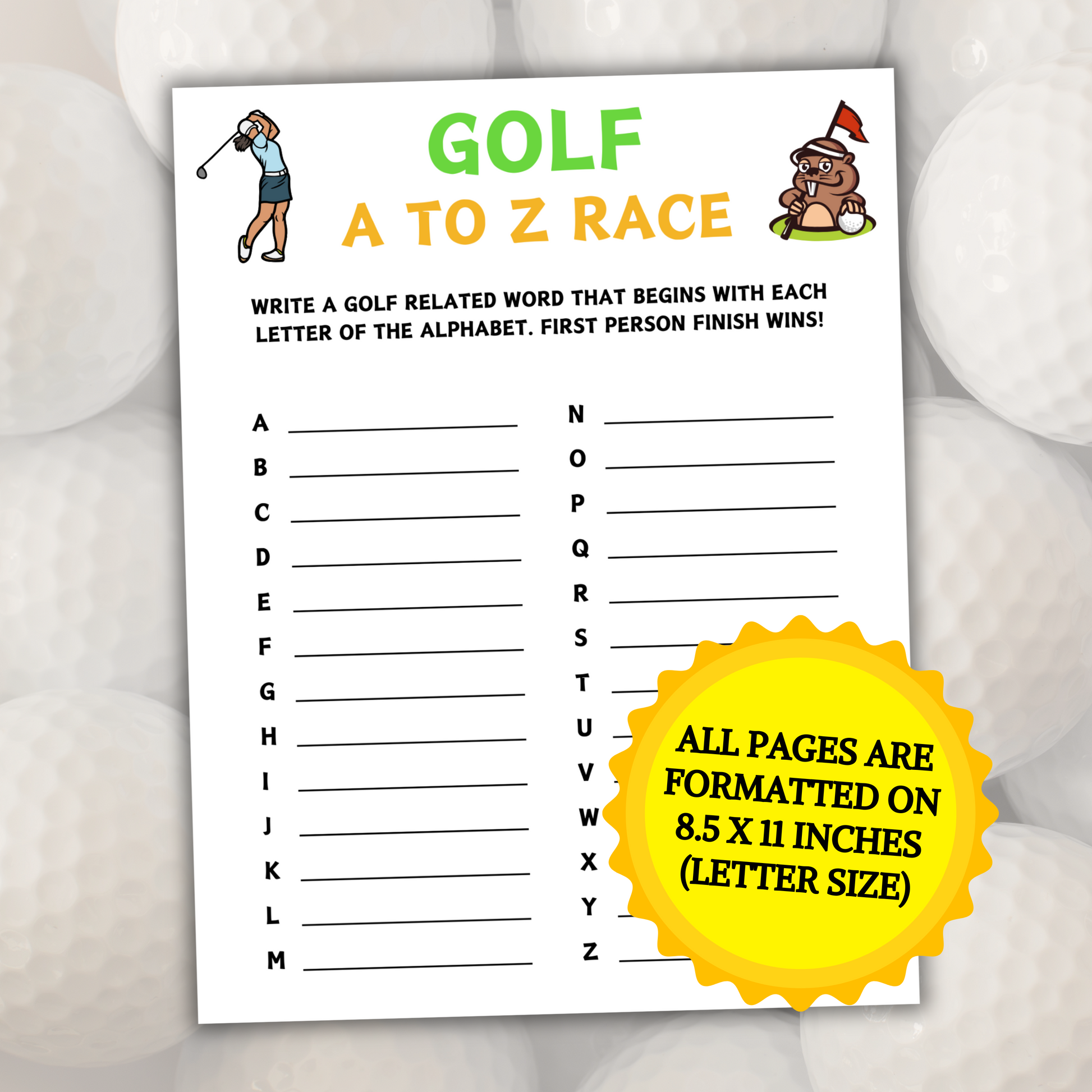 - A file included Golf A To Z Race Game (8.5" x 11").