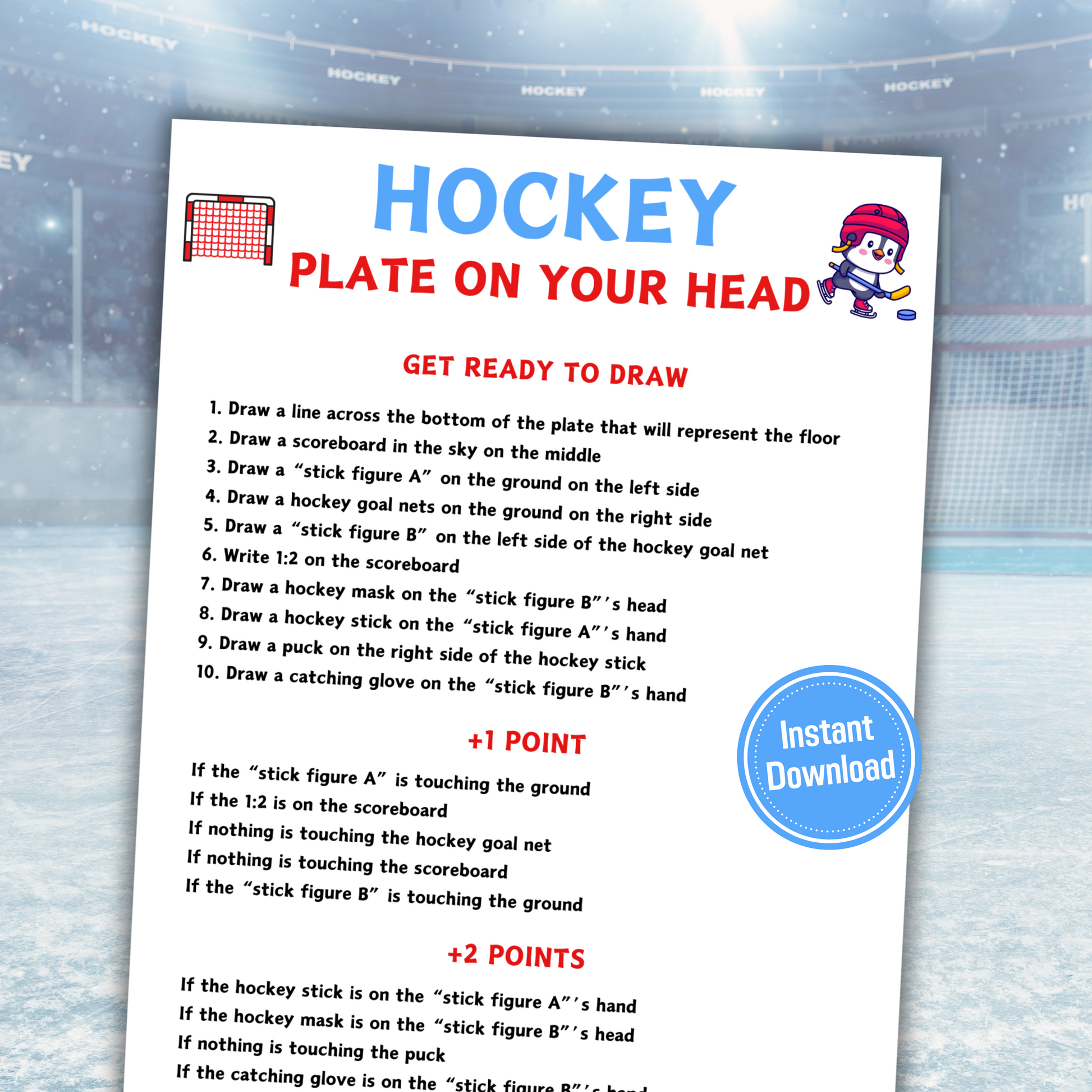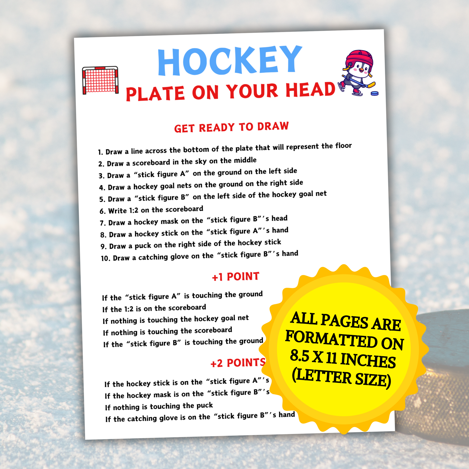 - A file included Hockey Plate On Your Head Game (8.5" x 11").