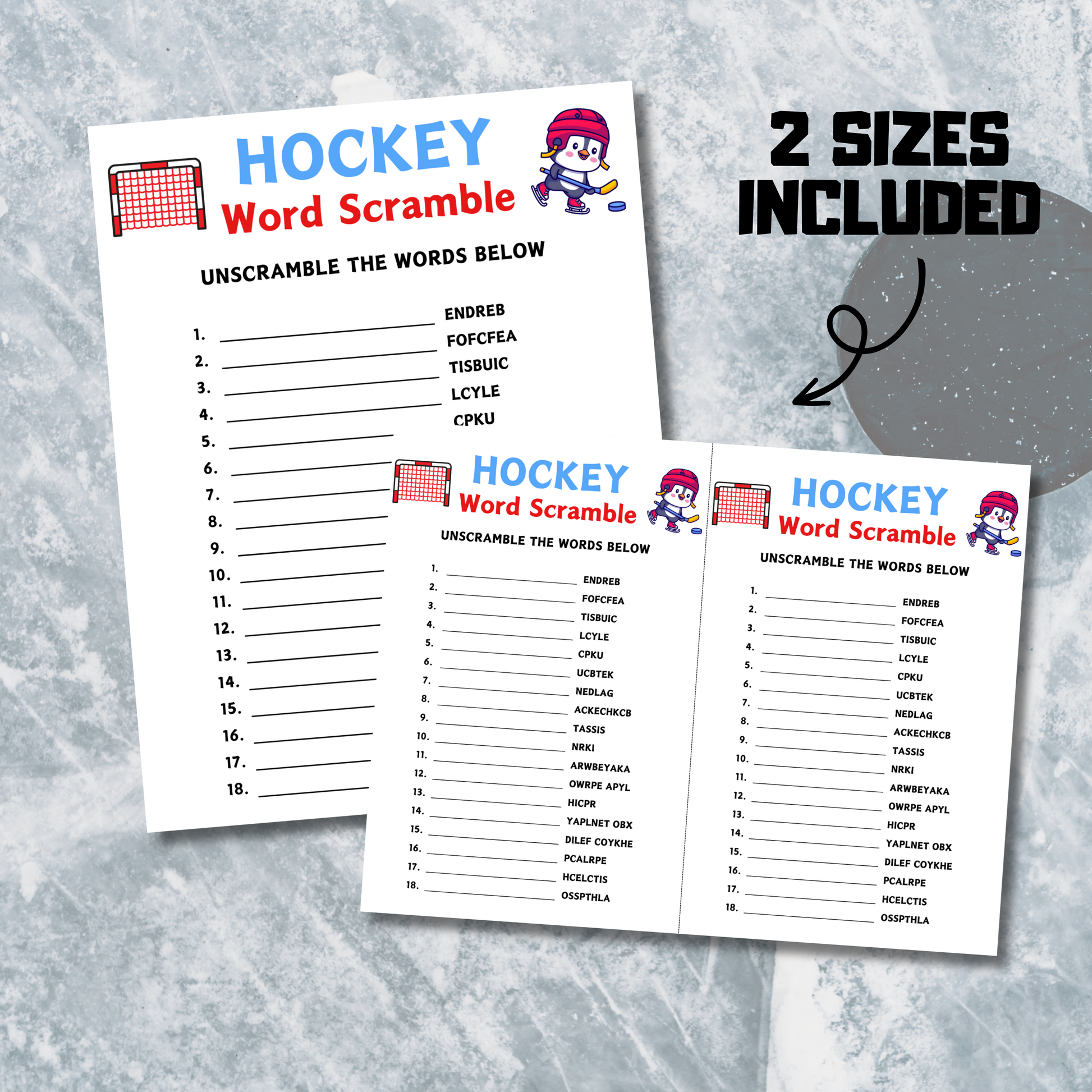 - A file included Hockey Word Scramble Game (8.5" x 11") (Answer Book).