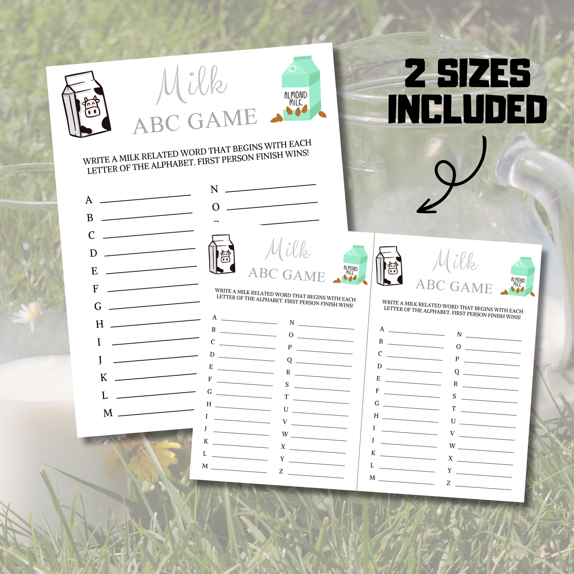 Milk ABC Game is a party game. Write a Milk related word that begins with each letter of the alphabet. First Person Finish Wins!