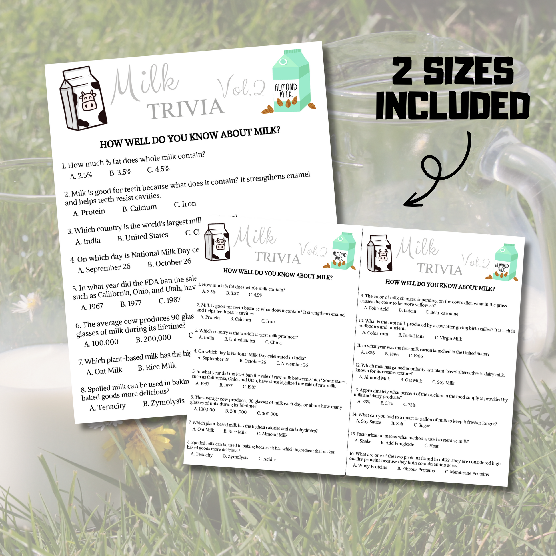 - A file included Milk Trivia Game Volume 2 (8.5" x 11") (Questions).