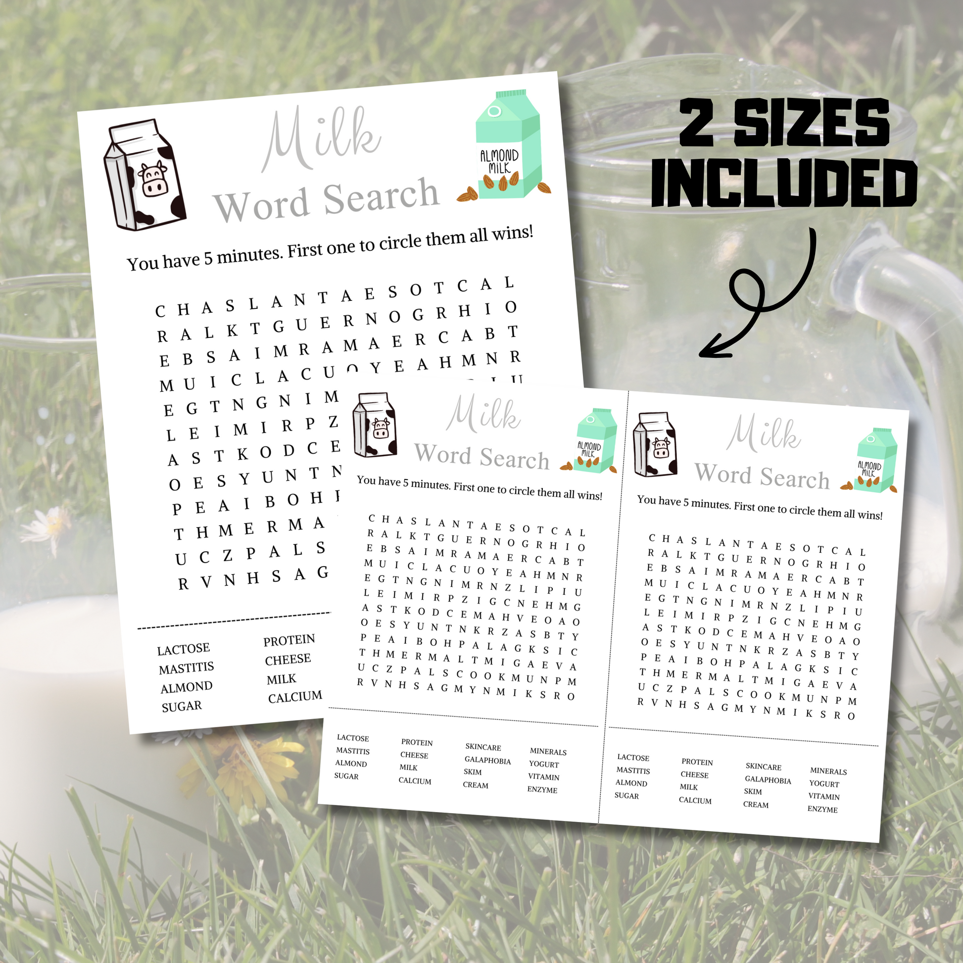 - A file included Milk Word Search Game (8.5" x 11") (Answer Book).