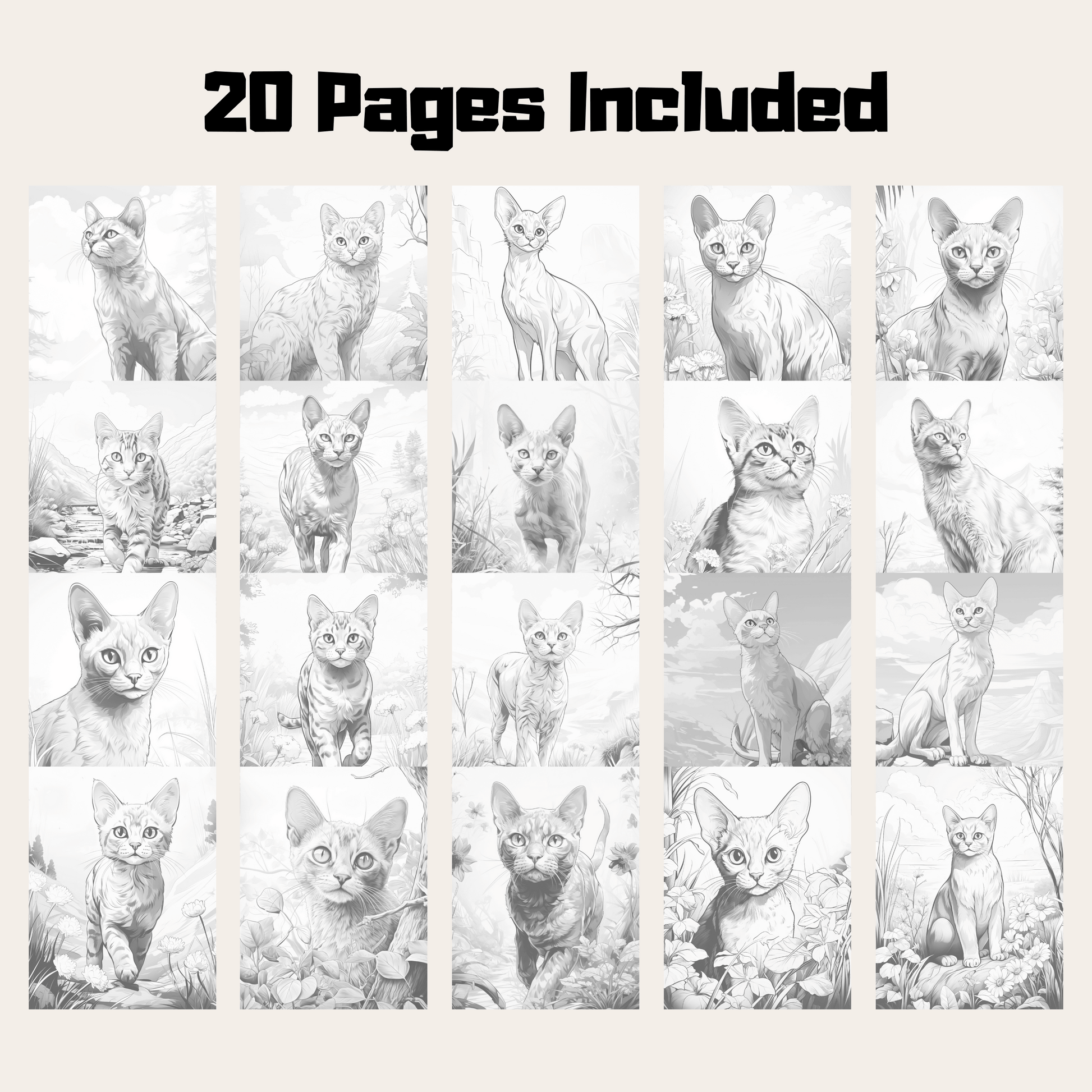 Realistic Abyssinian Cat Coloring Book, 20 Abyssinian Cat Grayscale Coloring Pages