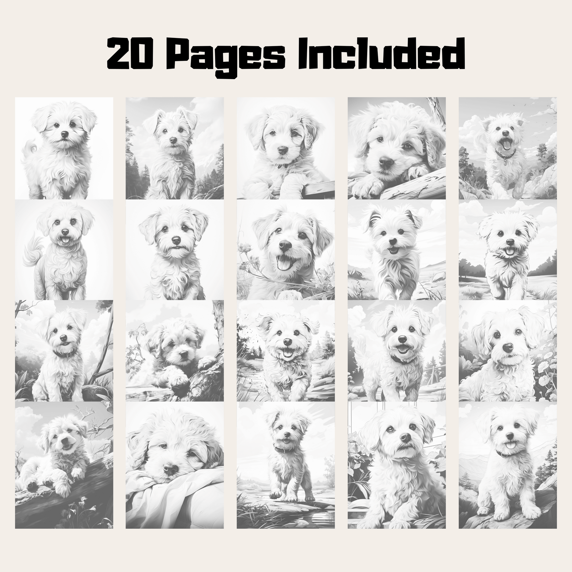Realistic Bichon Frise Coloring Book, 20 Detail Grayscale Adult and Kids Dog Coloring Page