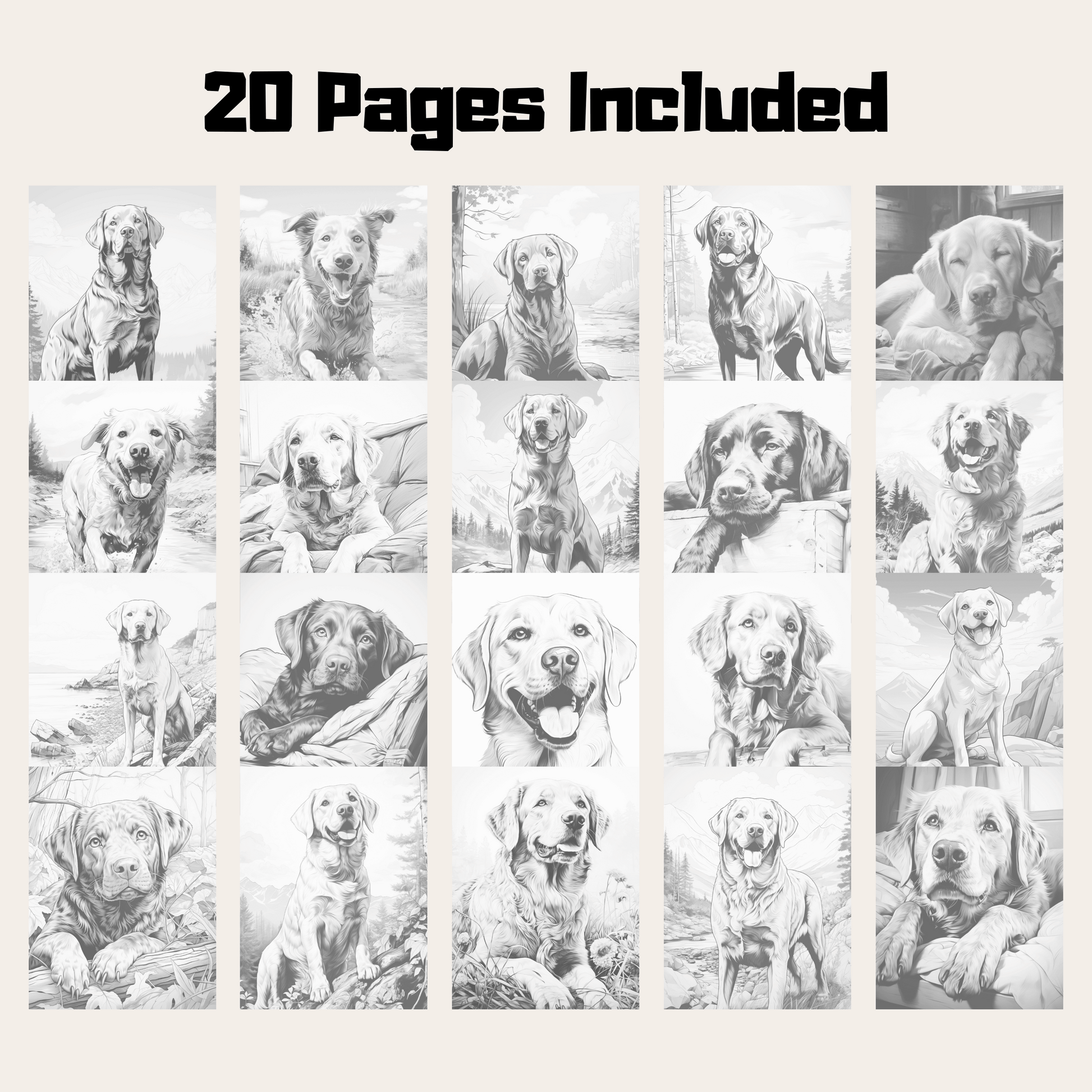 Realistic Labrador Retriever Coloring Book, 20 Dogs Grayscale Coloring Pages