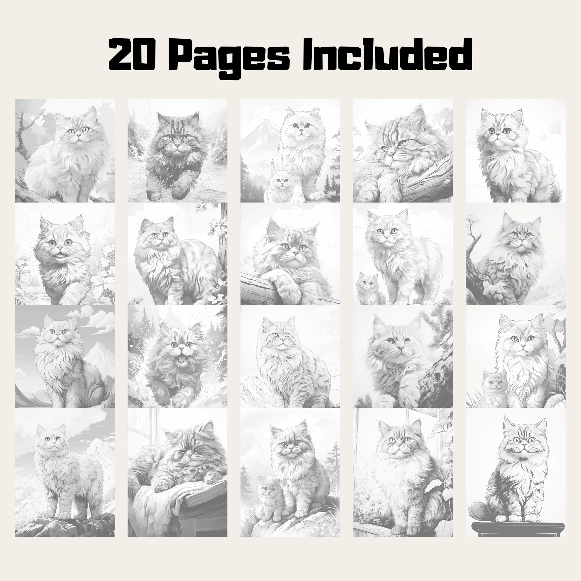 Realistic Persian Cat Coloring Book, 20 Persian Cat Grayscale Coloring Pages for All Age