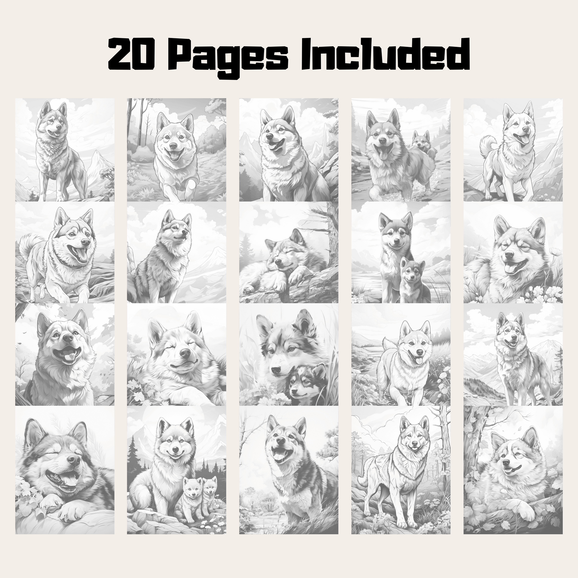 Realistic Shiba Inu Coloring Book, 20 Shiba Inu Grayscale Coloring Pages for All Ages