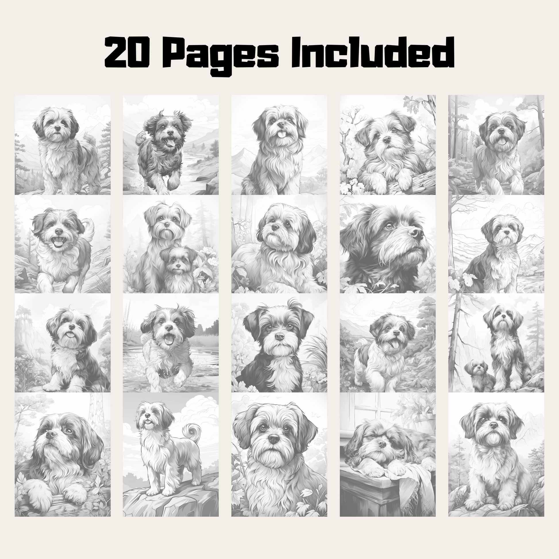 Realistic Shih Tzu Coloring Book, Shih Tzu Grayscale Coloring 20 Pages for Adults and Kids