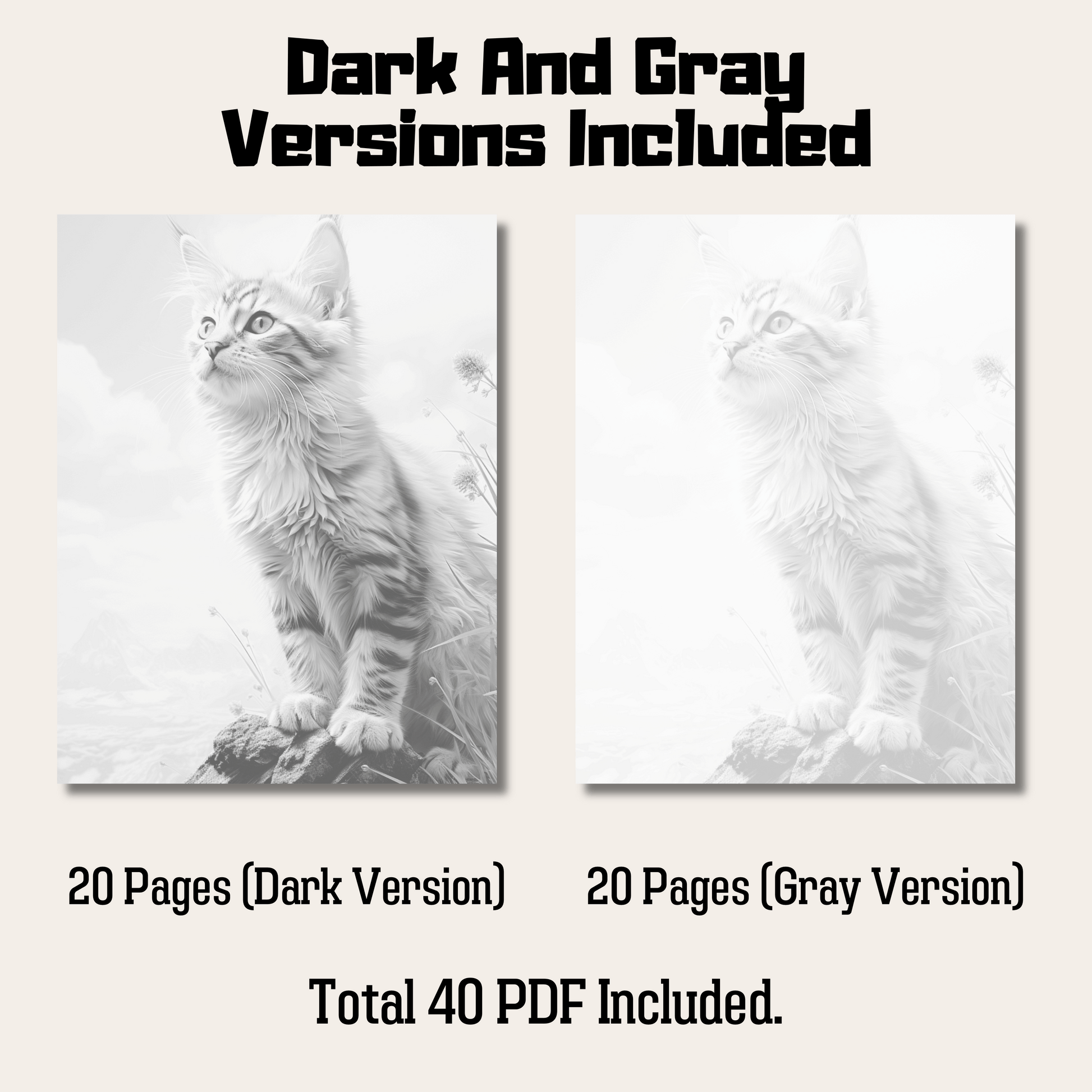 Realistic Toyger Cat Coloring Book, 20 Toyger Cat Grayscale Coloring Pages