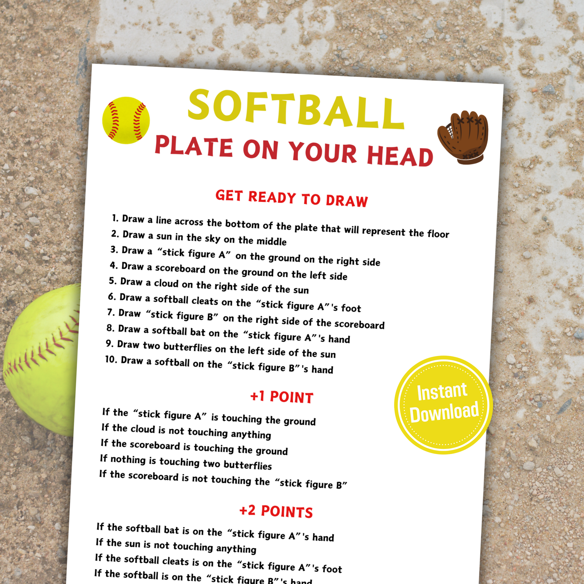 - A file included Softball Plate On Your Head Game (8.5" x 11").