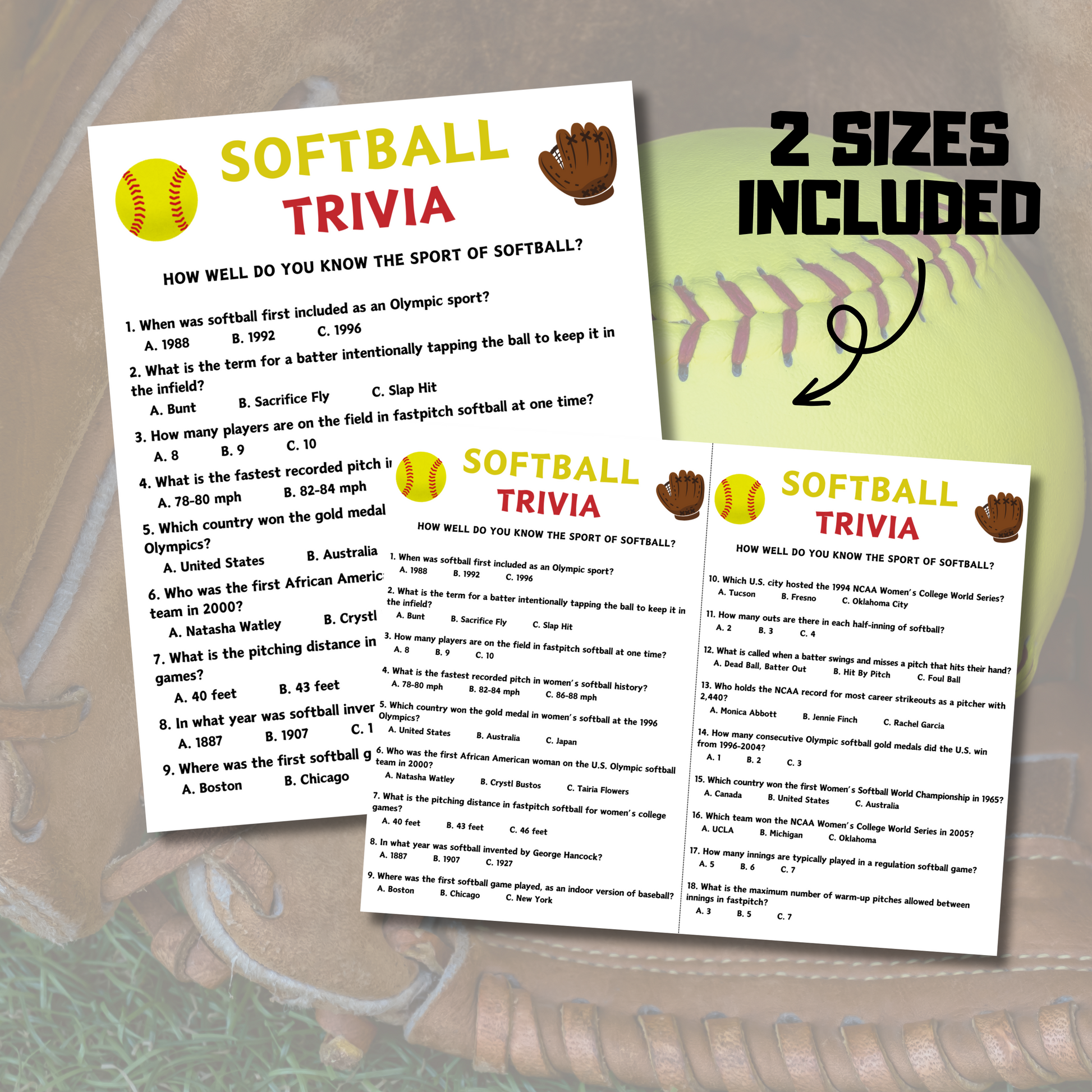 - A file included 2 Pages Softball Trivia Game (8.5" x 11") (Questions).