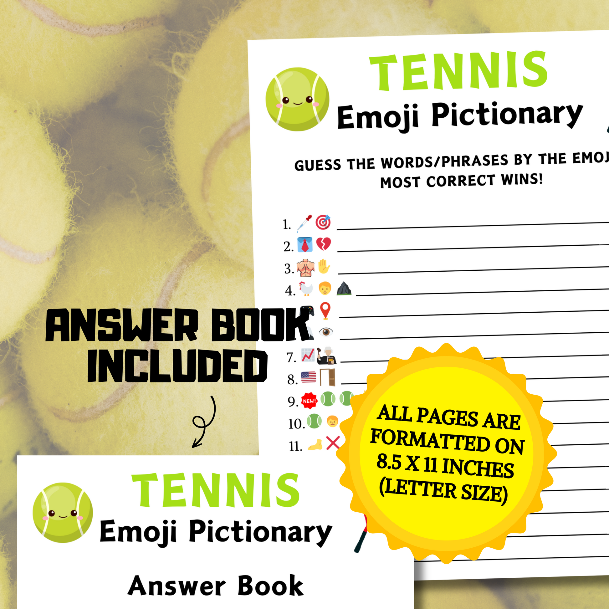 - A file included Tennis Emoji Pictionary Game (8.5" x 11") (Answer Book).