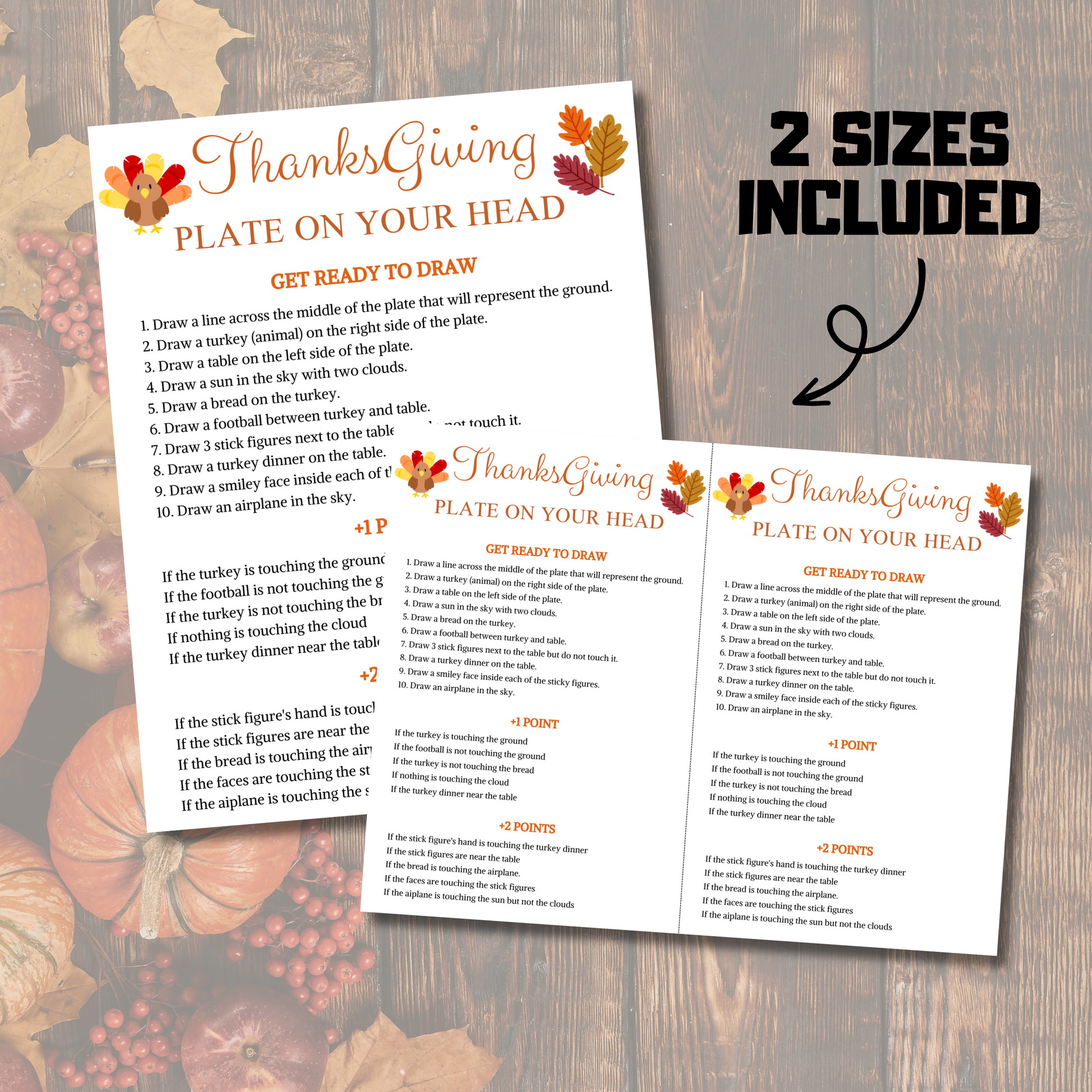 - A file included Thanksgiving Plate On Your Head Game (8.5" x 11").