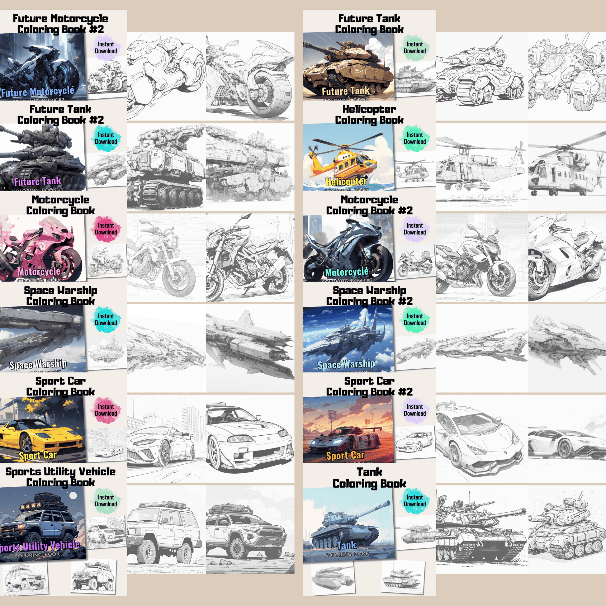 Ultimate Transport Coloring Book Mega Bundle, 800 Pages Detailed Illustrations + 20 Cover