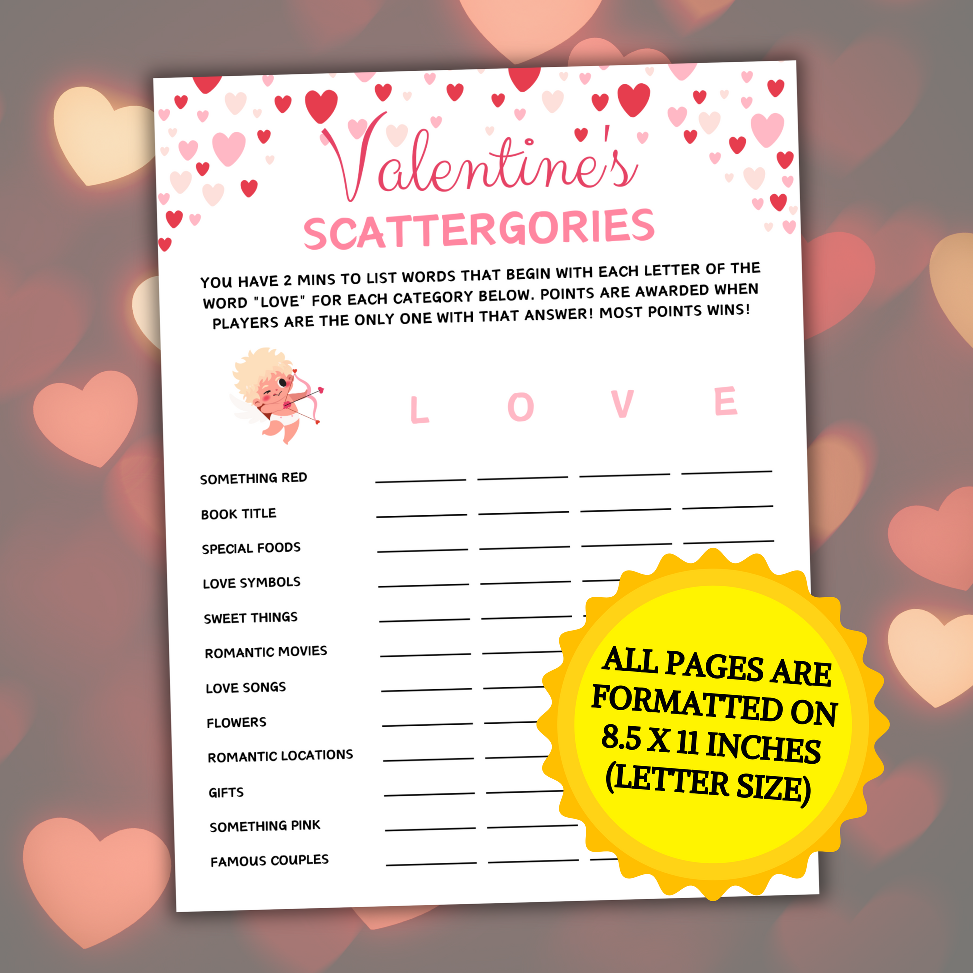 - A file included Valentine's Day Scattergories Game (8.5" x 11").