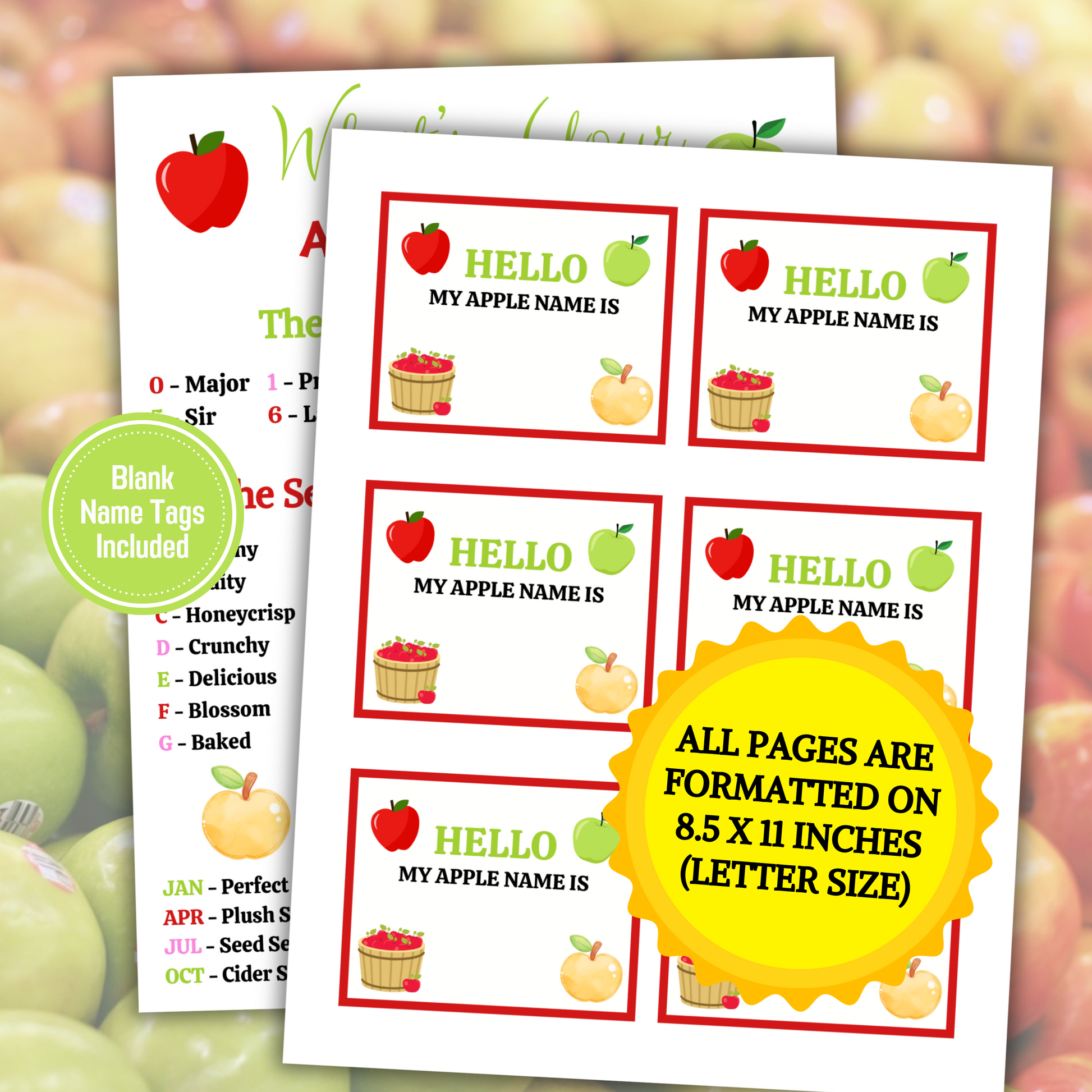 - A file included What's Your Apple Name Game (8.5" x 11") (Blank Name Tag).