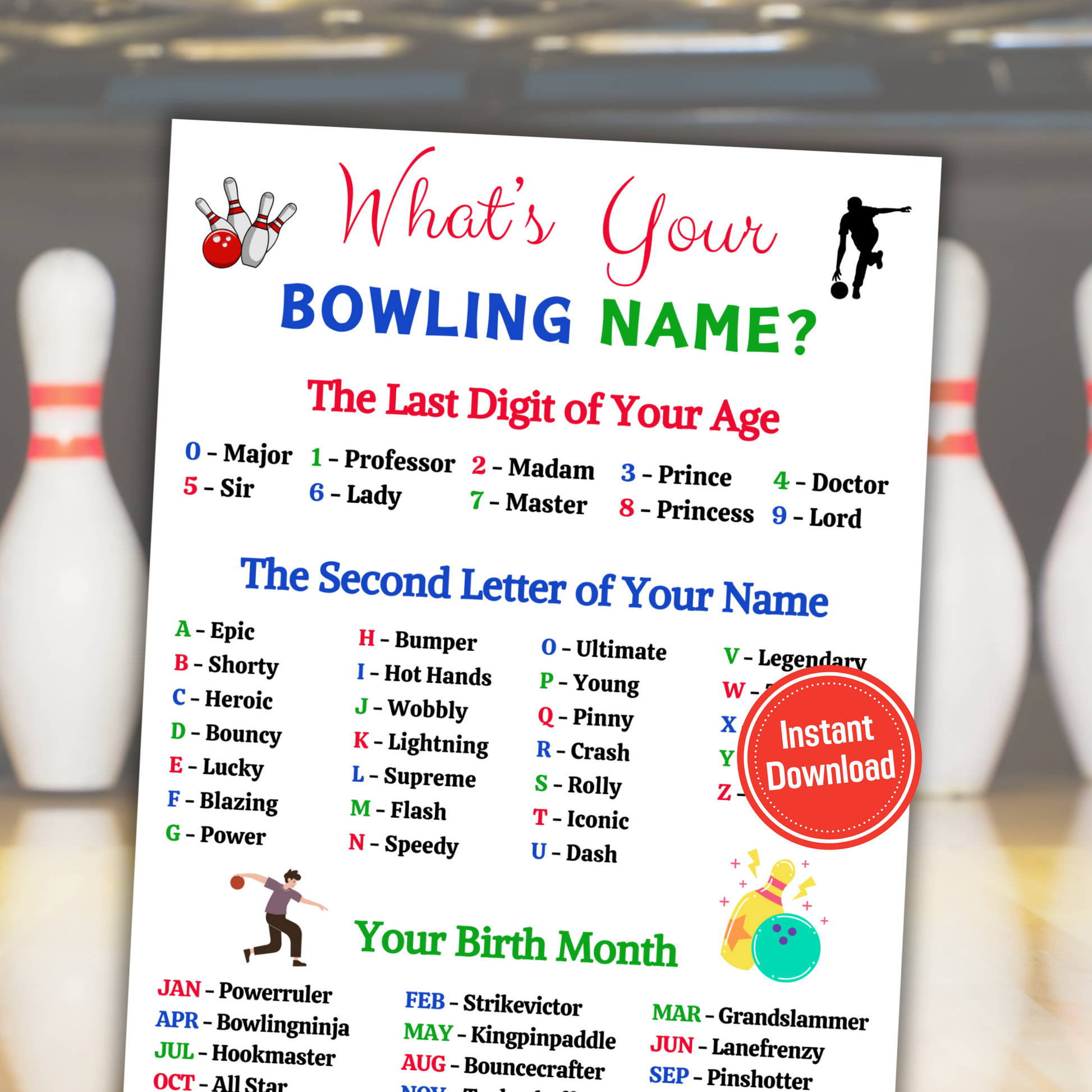 What's Your Bowling Name Game | Printable Bowling Name Generator