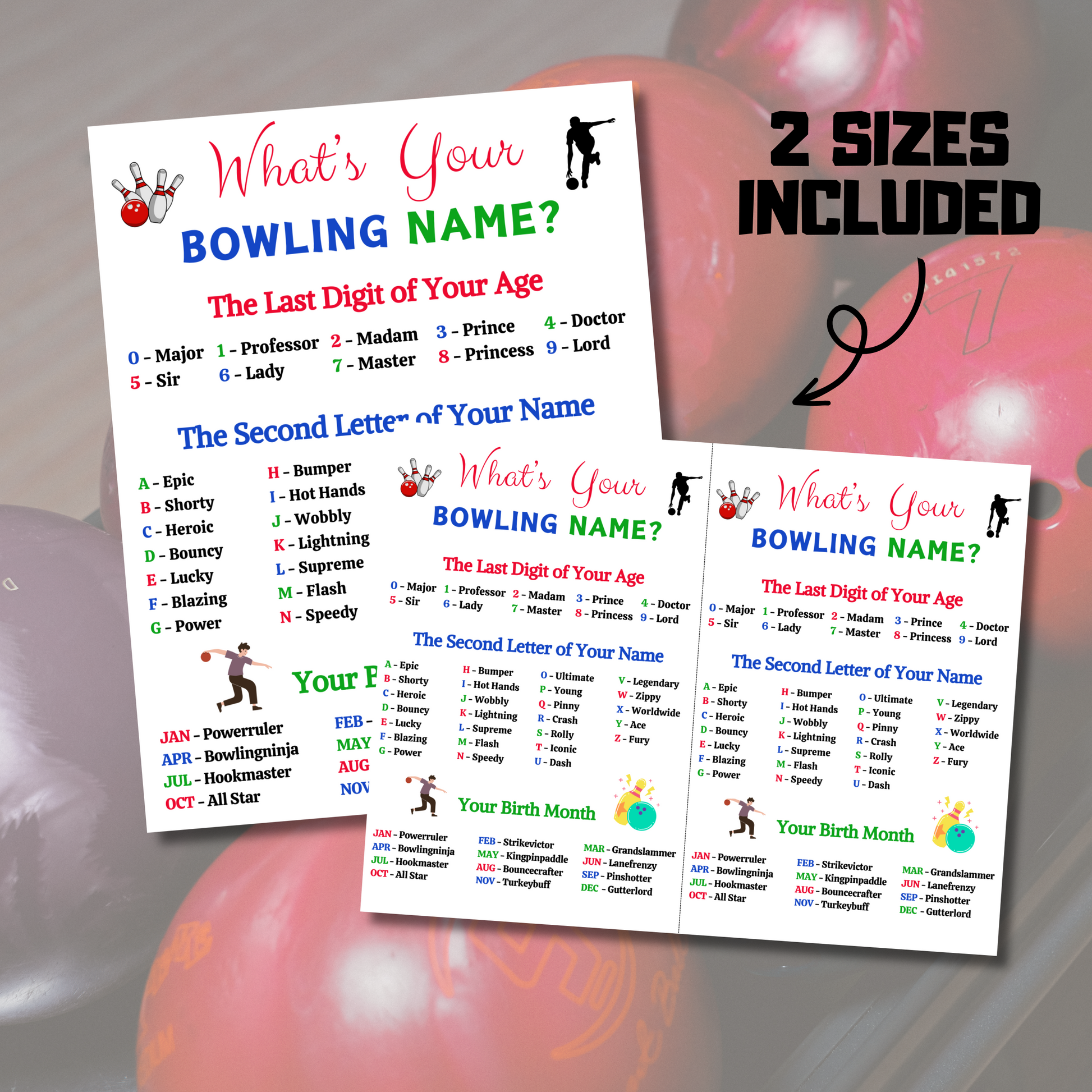 - A file included What's Your Bowling Name Game (8.5" x 11").
