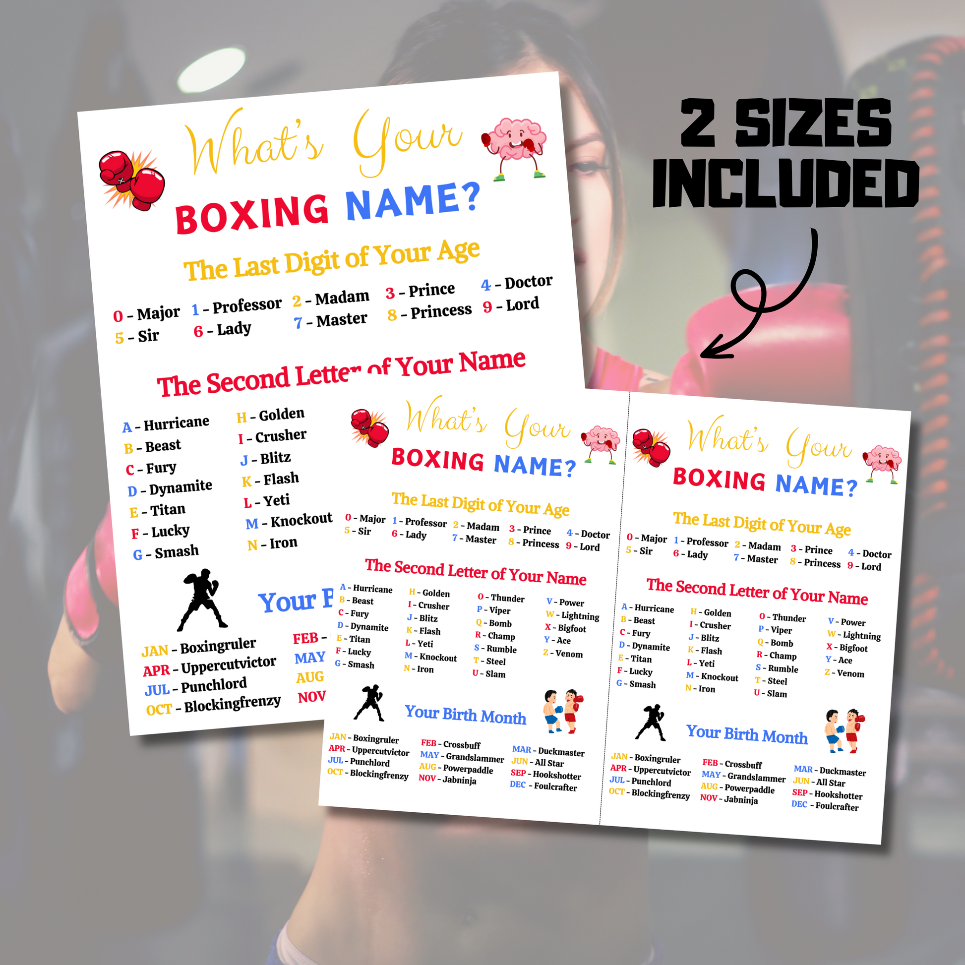 - A file included What's Your Boxing Name Game (8.5" x 11").
