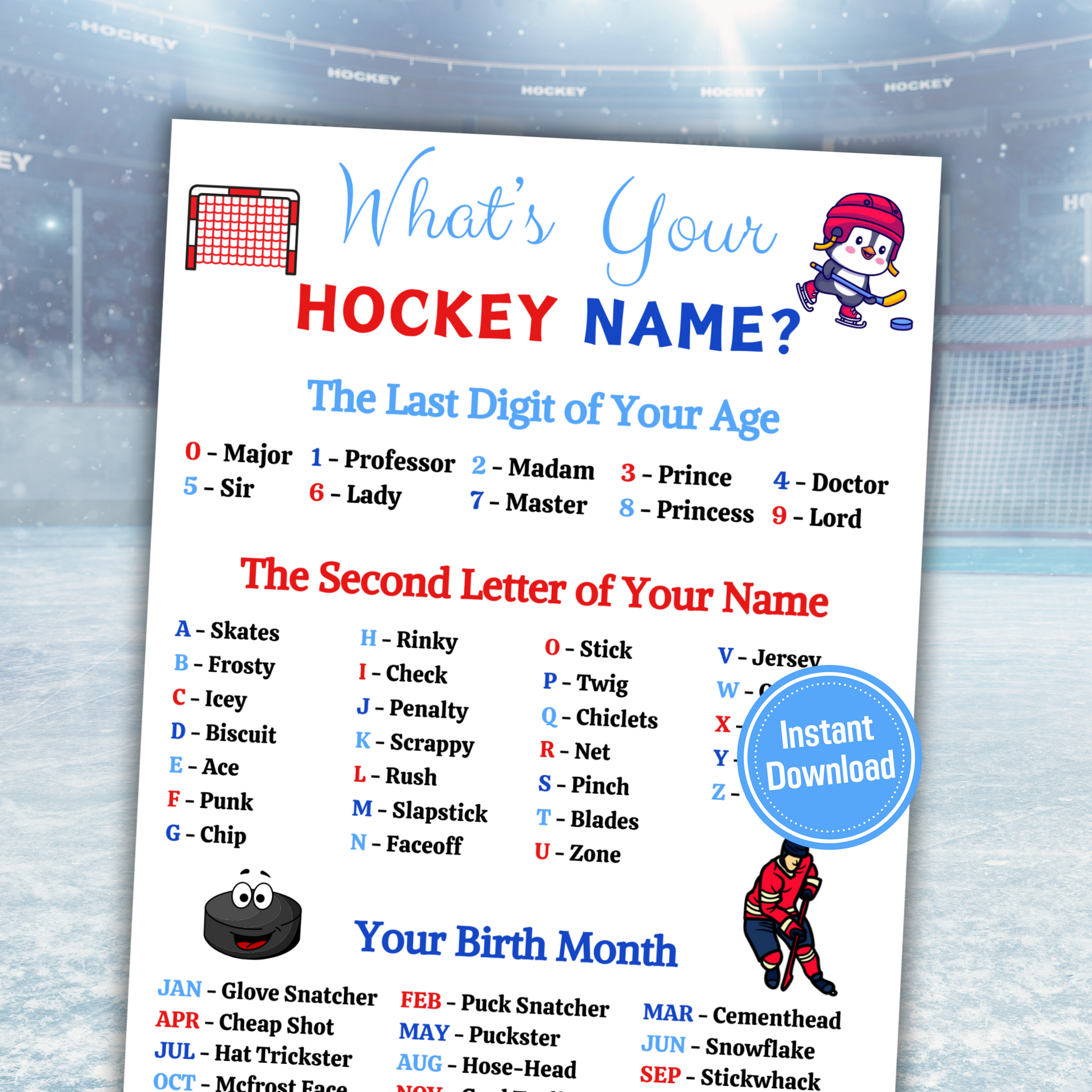 What's Your Hockey Name Game | Printable Hockey Name Generator