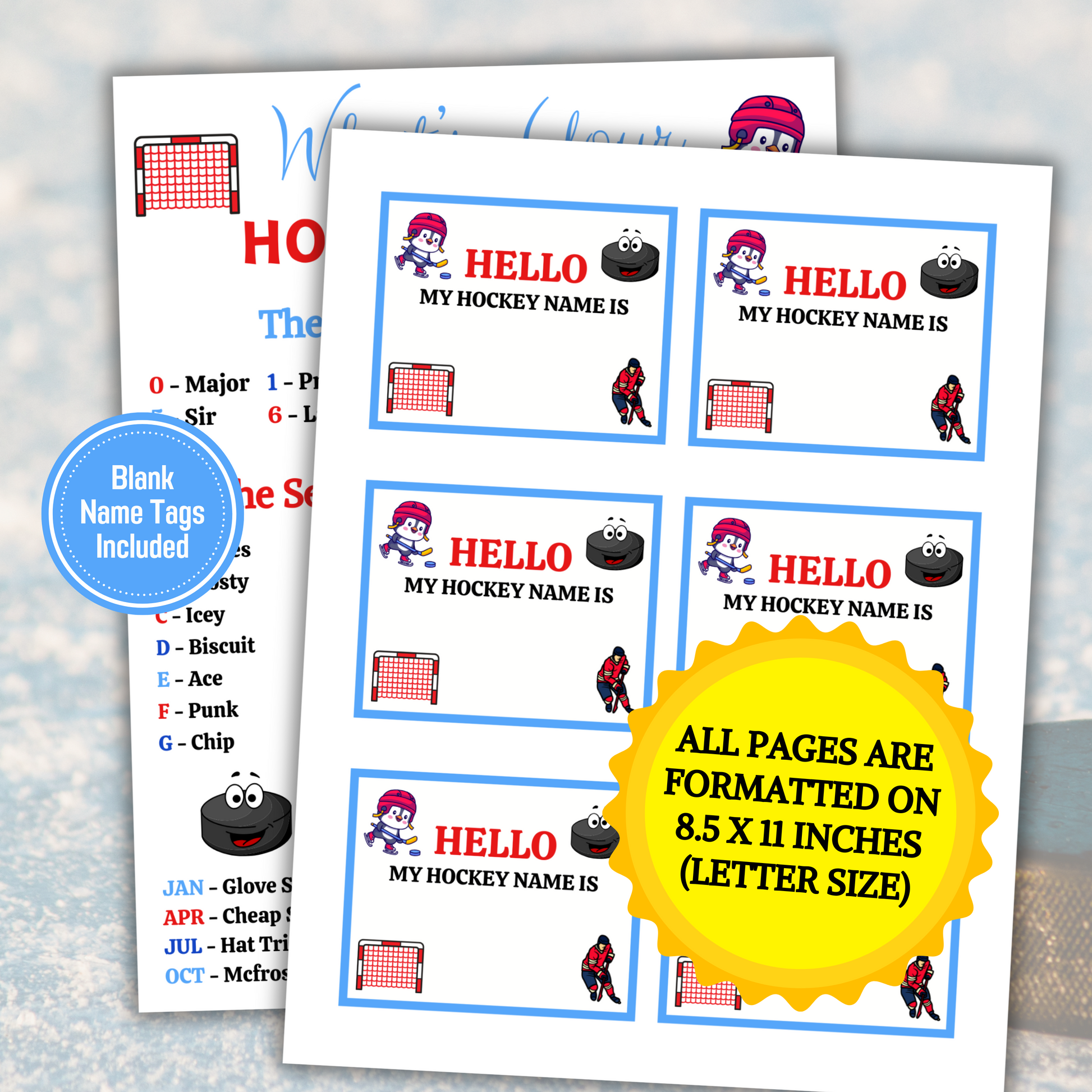 - A file included What's Your Hockey Name Game (8.5" x 11") (Blank Name Tag).