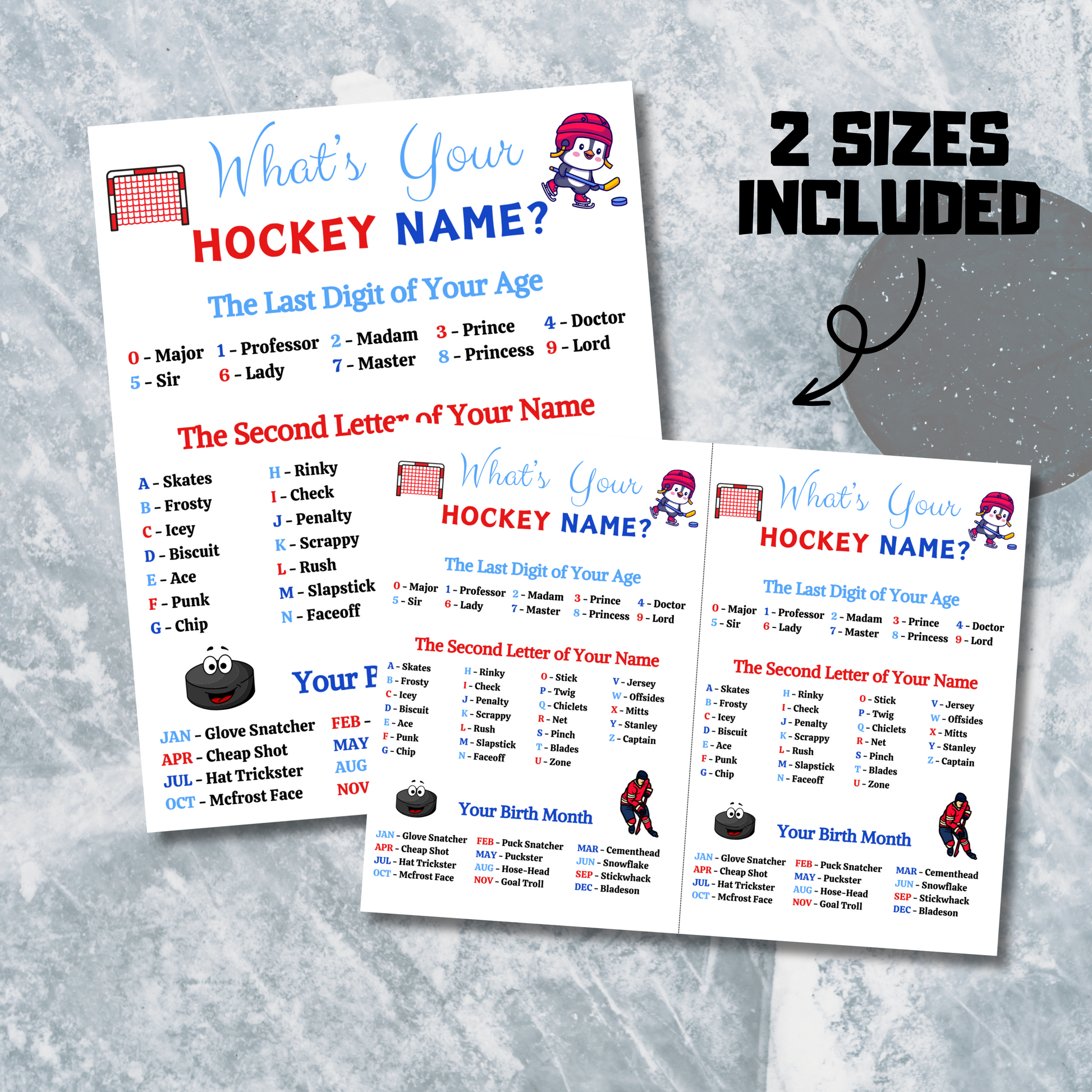 - A file included What's Your Hockey Name Game (8.5" x 11").