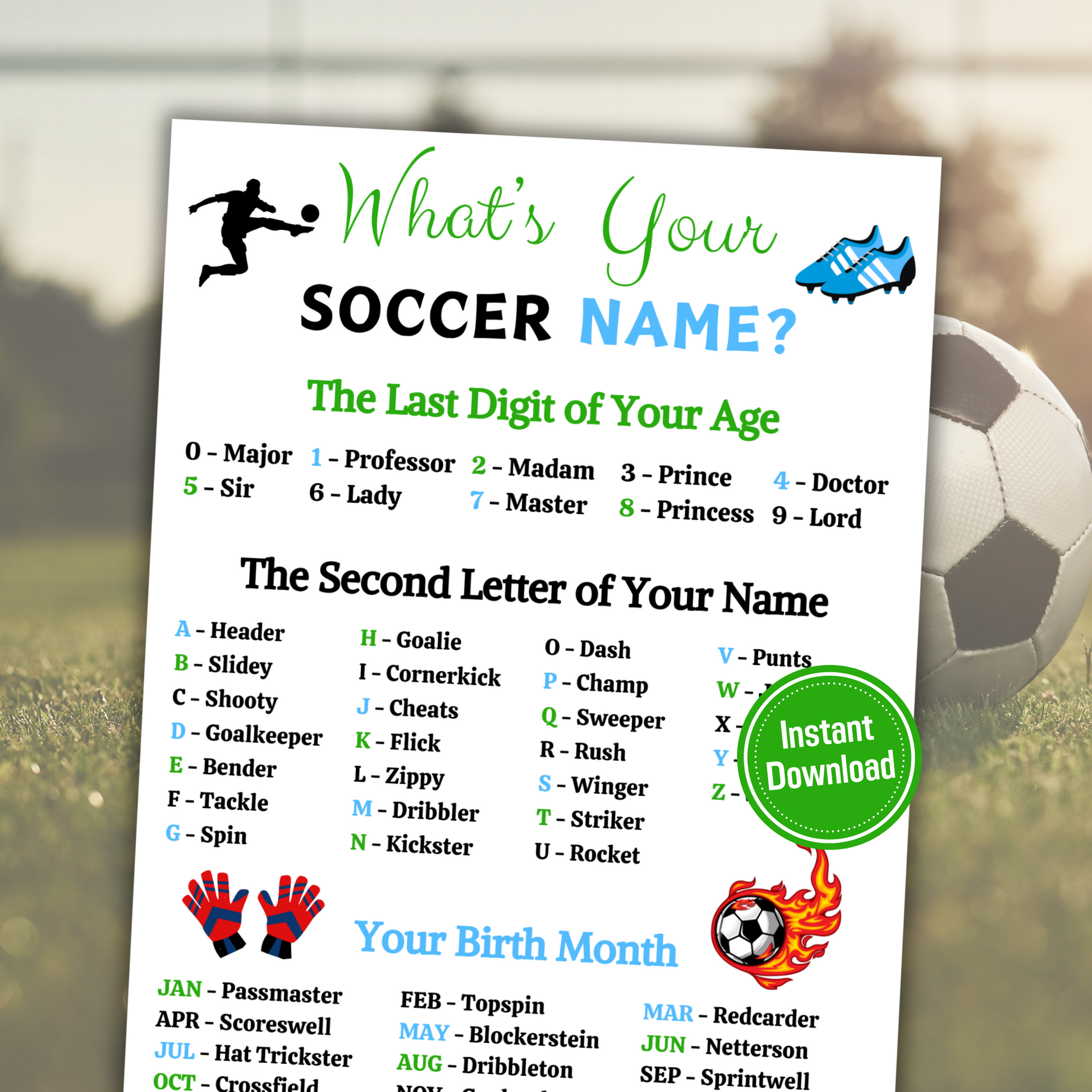 What's Your Soccer Name Game | Printable Soccer Name Generator