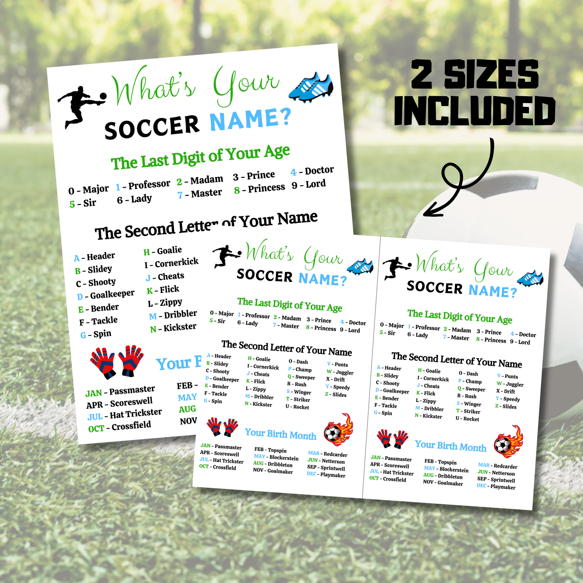 - A file included What's Your Soccer Name Game (8.5" x 11").
