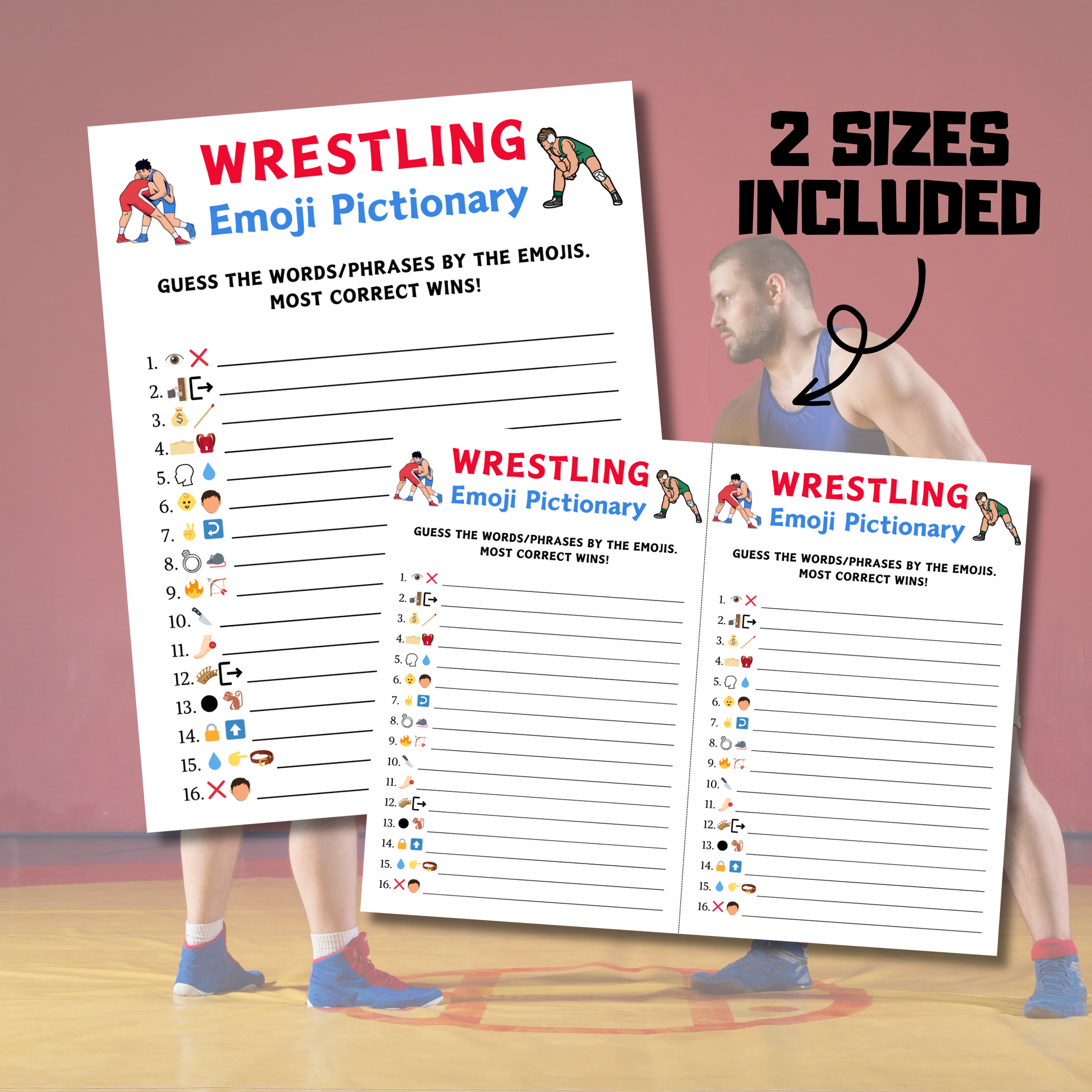 - A file included Wrestling Emoji Pictionary Game (8.5" x 11") (Answer Book).