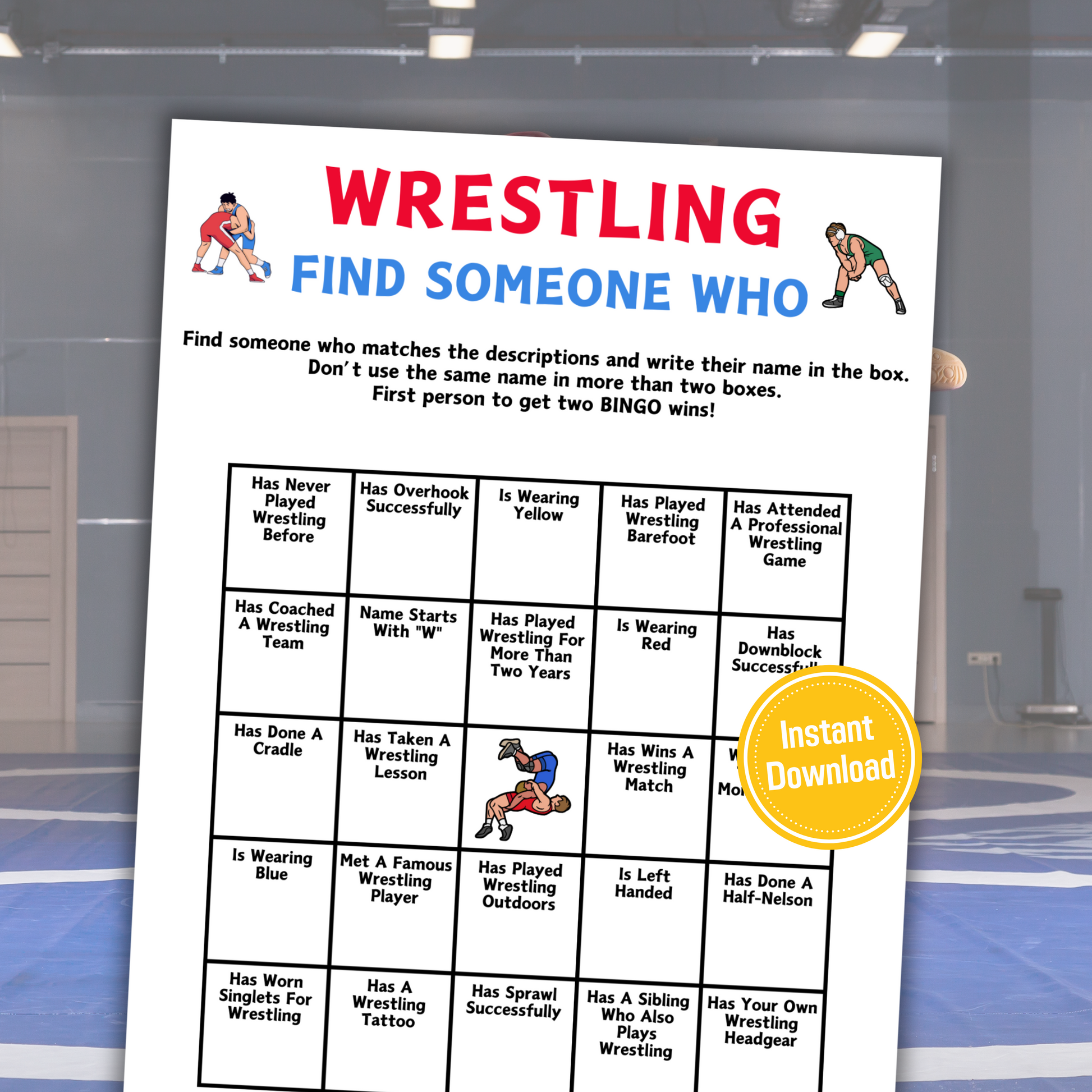 Engage in the excitement with our Wrestling Find Someone Who Game! This dynamic activity is perfect for wrestling enthusiasts eager to ignite energy at any gathering. Challenge yourself to identify participants fitting wrestling-related clues, fostering connection, amusement, and spirited interaction.
