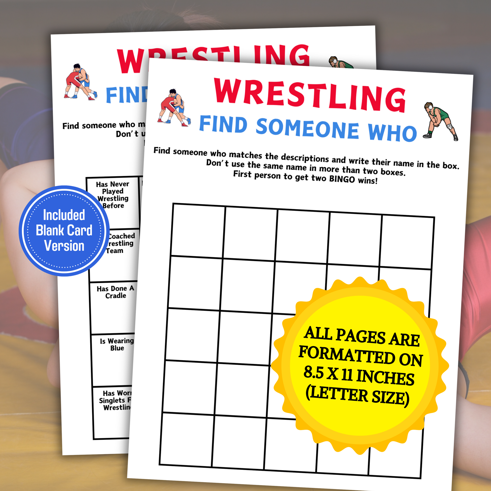 - A file included Wrestling Find Someone Who Game (8.5" x 11") (Blank).