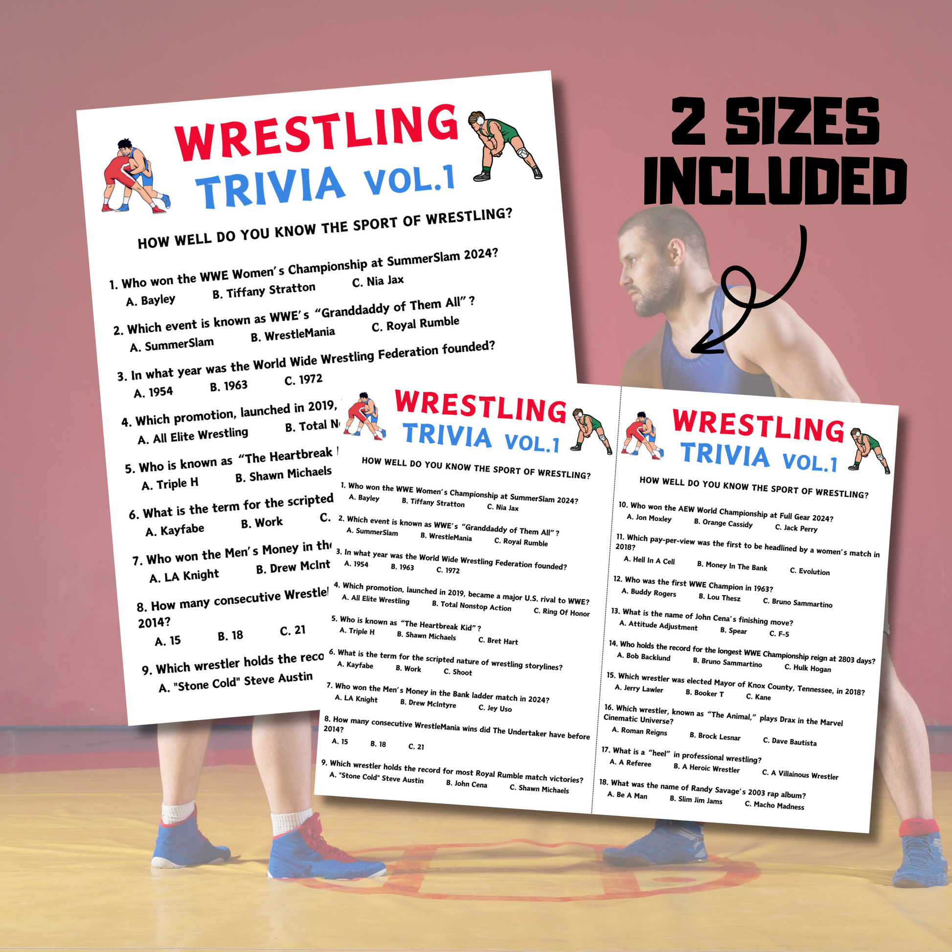 - A file included 2 Pages Wrestling Trivia Game Vol.1 (8.5" x 11") (Questions).