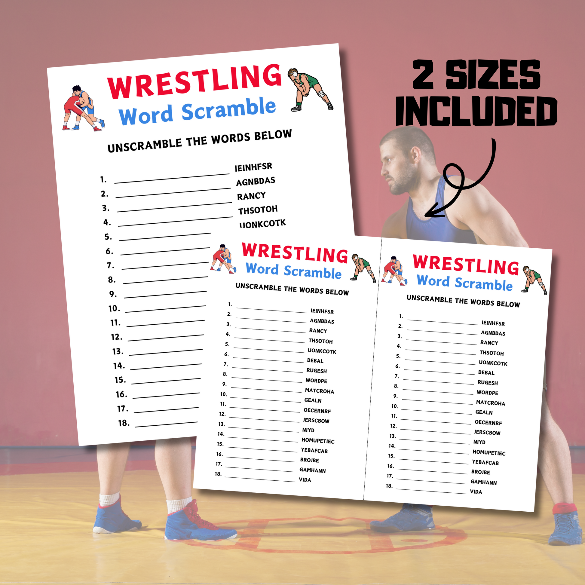 - A file included Wrestling Word Scramble Game (8.5" x 11") (Questions).